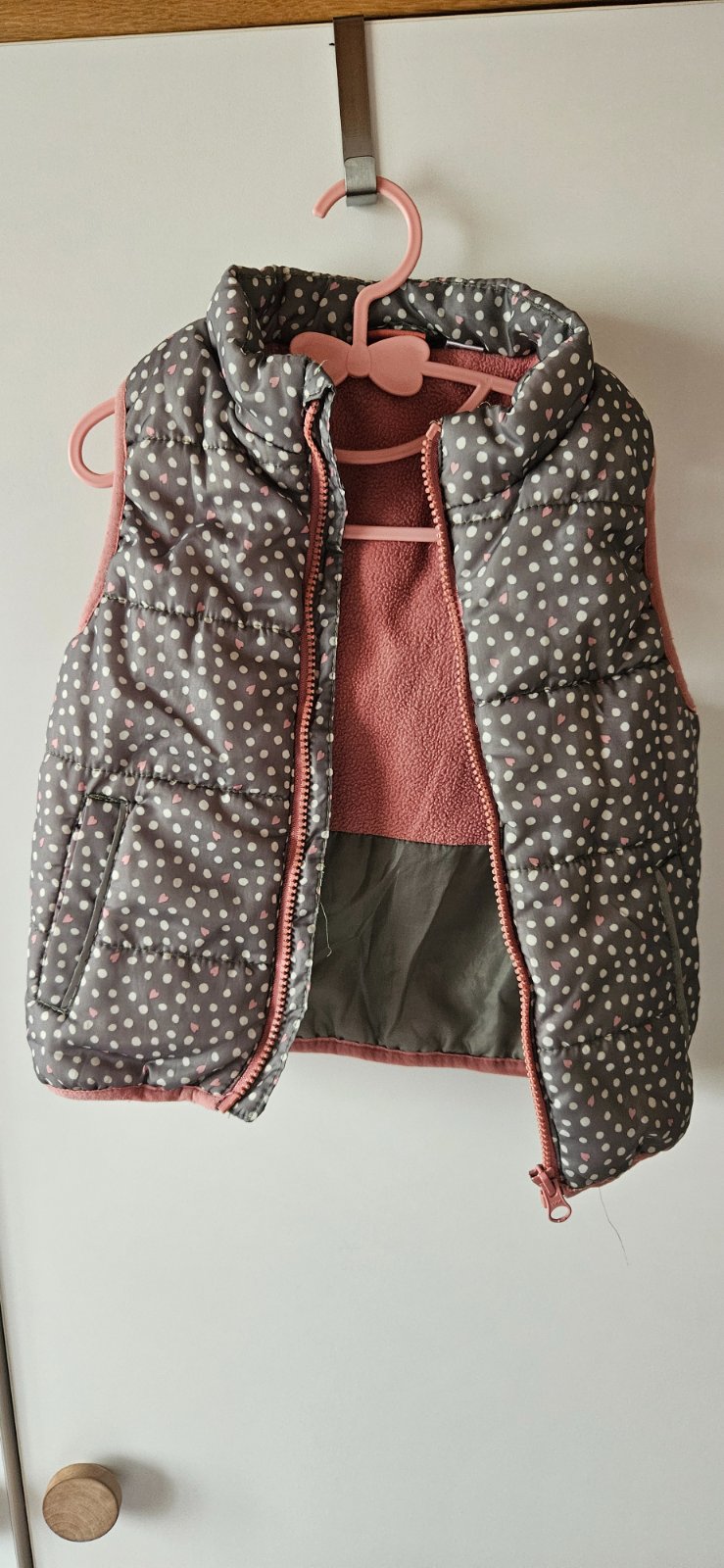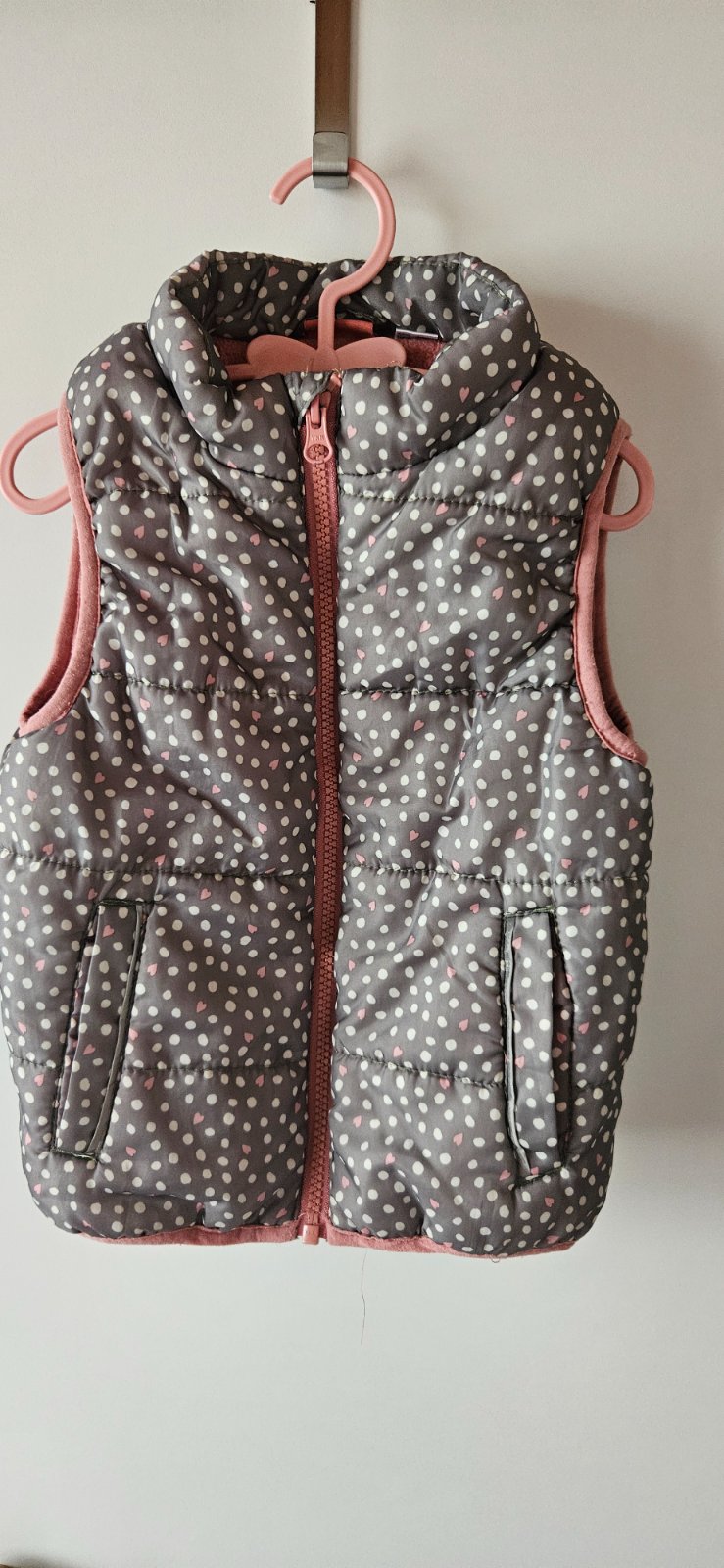 Krásna broskNova vesta v super stave bez známok nosenia, v prípade záujmu mame k tomu aj čiapočky za 2€