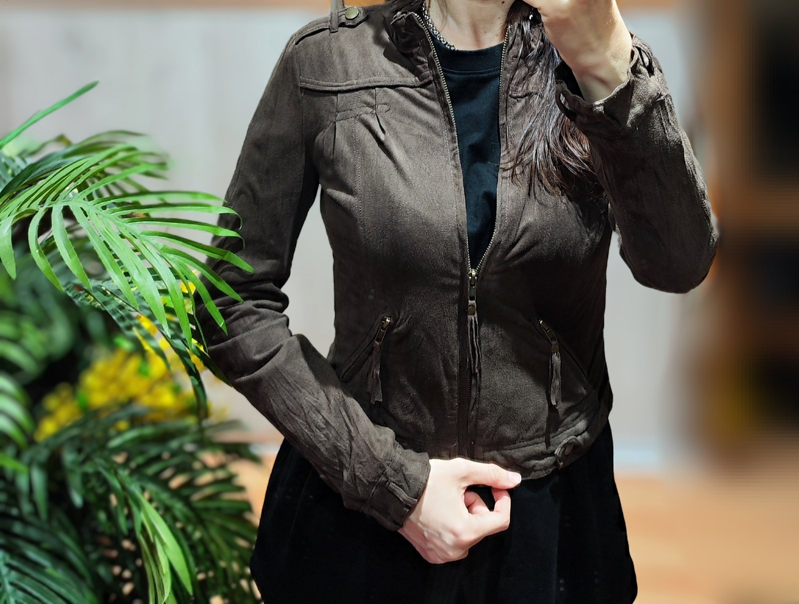 Krásna kvalitná dámska bunda, materiál je niečo ako jelenica, prípadne semiš. Veľkosť xs. Po bokoch má vrecká na zips. Veľmi príjemná na nosenie. Cena + poštovné prevodom alebo osobne v Ba. Pozrite si aj moje ďalšie inzeráty