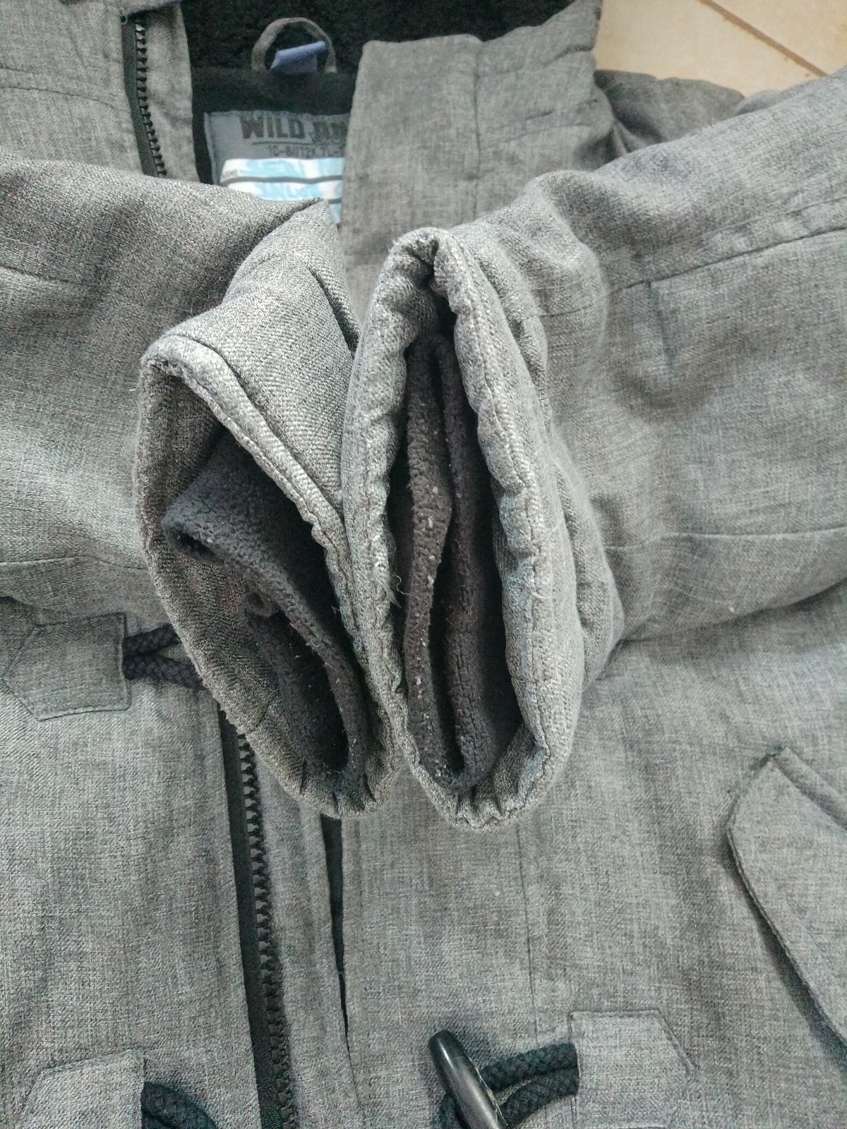 V peknom zachovalom stave. Ale má nejaké fliaciky, kuk foto. Podľa mňa ešte do škôlky môže byť, pre nenáročnú mamičku. Bola super teplá. S reflexnými prvkami.