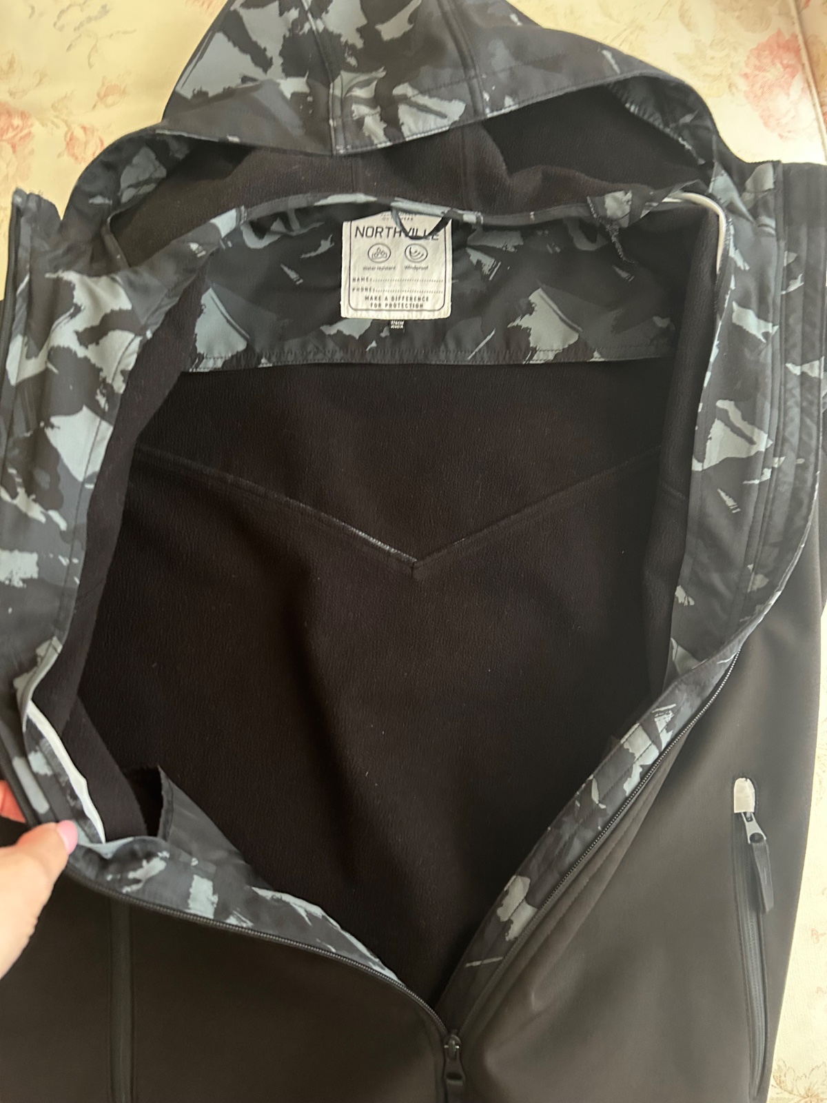 Prechodná bunda, značka C&A, veľkosť 176, je nepremokavá, vetruvzdorná, vo vnútri podšitá. Bola málo používaná, je veľmi zachovalá, nemá poškodenia. Na konci rukávov má suchý zips na prispôsobenie. Rozmery: šírka pod pazuchou 55cm, dĺžka rukáva od ramena 65cm a dĺžka bundy meraná vzadu na chrbte v strede je 72,5cm.