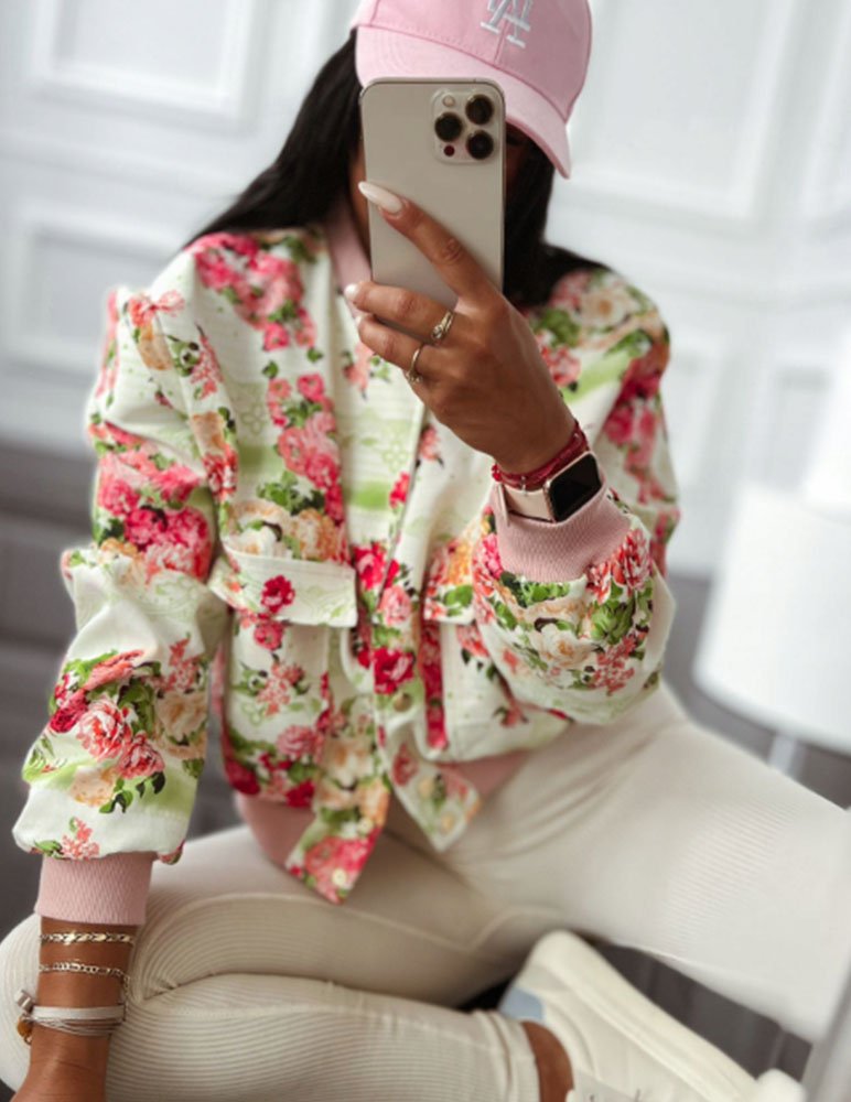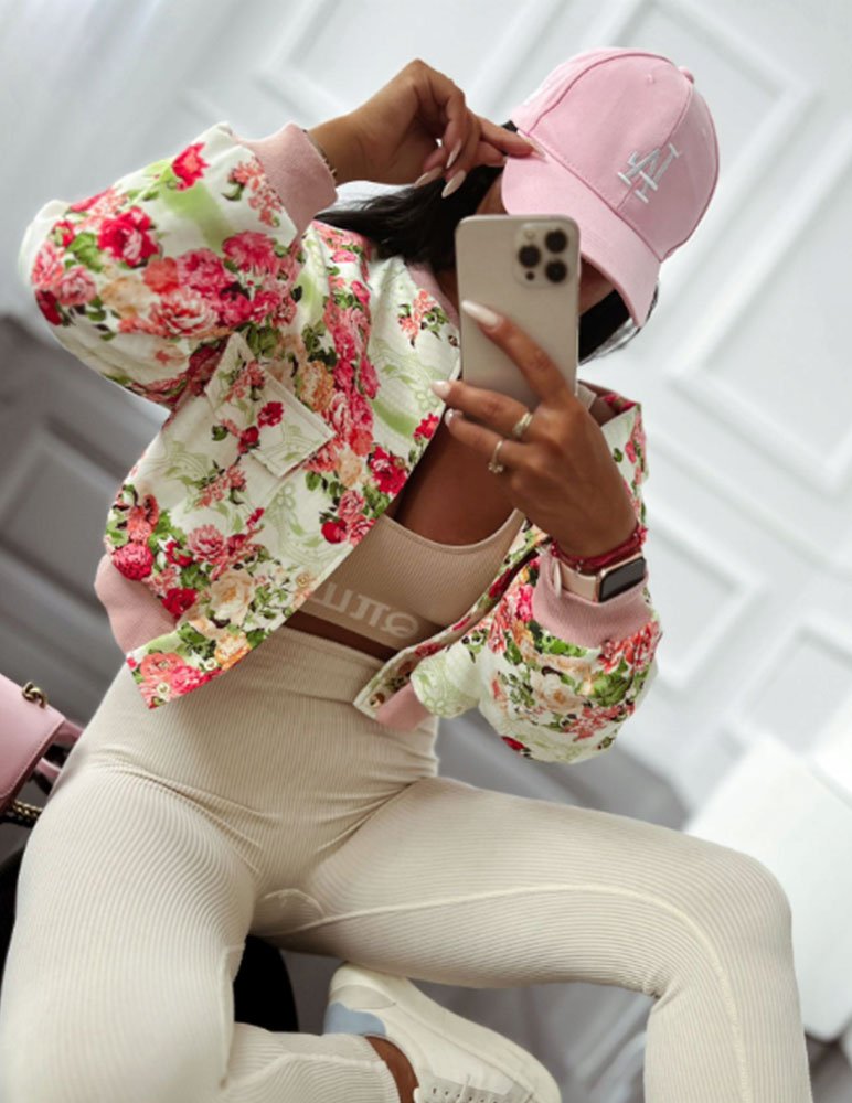 Béžová kvietkovaná bunda Dakota je romanticky pôsobiaci bluzón. Bluzon Dakota sa hodí k jednoduchým ležérnym šatám alebo rifľovým outfitom ako vrchná časť odevu.