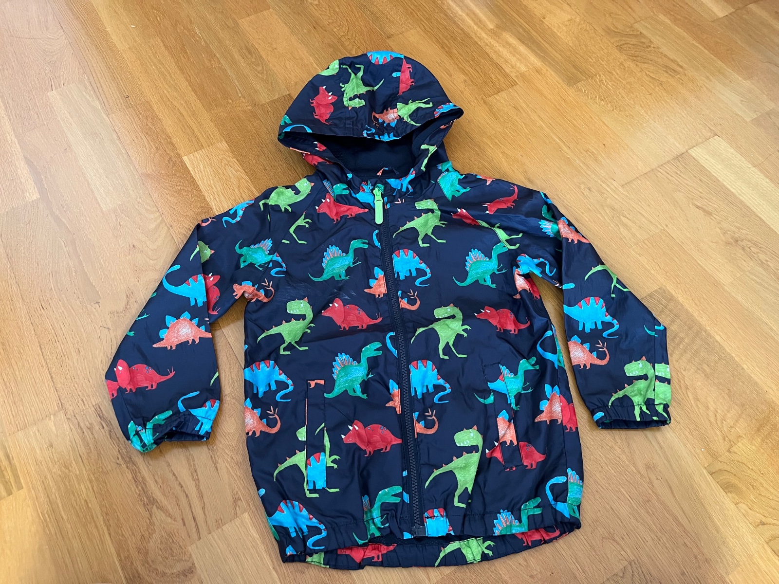 Tenky kabat vel.122/128 Pre 6-8 rokov Dlzka 55 cm Dlzka rukav od plece 46 cm,od krku 56 cm Sirka pod pszuchsmi 2x45 cm Dobry stav,vyzera ako novy