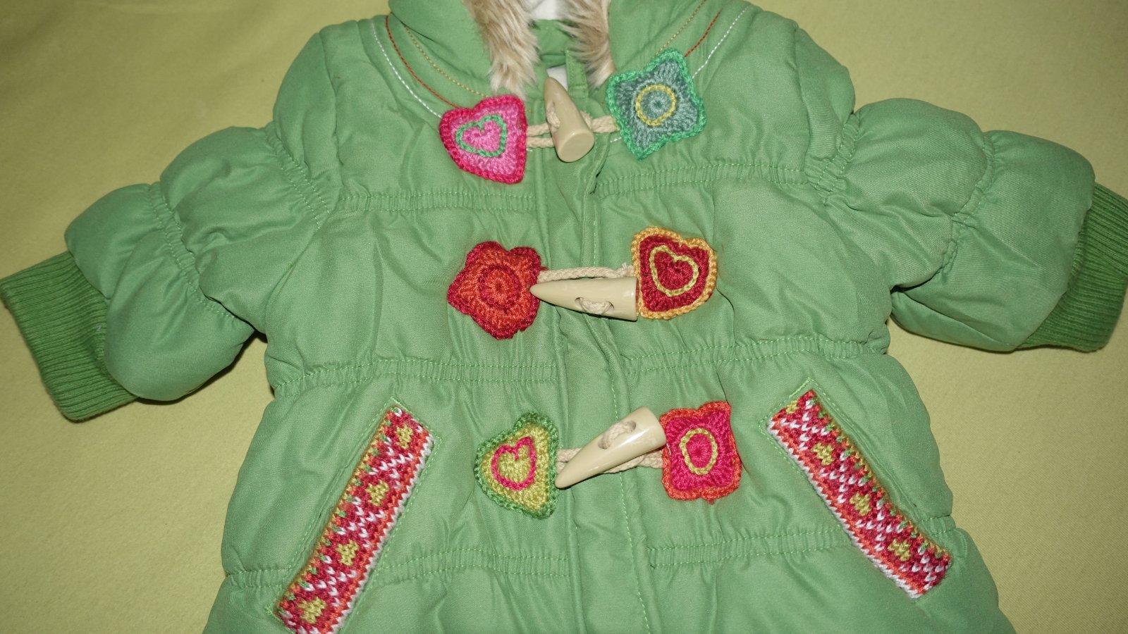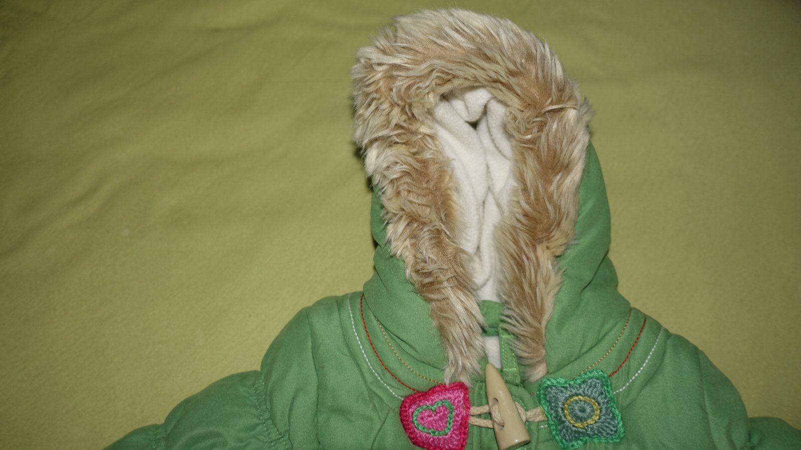 Nadherna zimna bundicka vo velmi dobrom nosenom stave. Je podsita flisom a futrovana- aj do studensej zimy. Ma nadhernu sytu zelenu farbu.