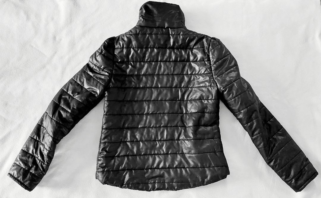 Mne je už malá, tak posúvam. Inak by som ju nepredávala. Nie je taká leskla ako na mojich fotkách. Veľkosť uvedená XL, ale je menšia.