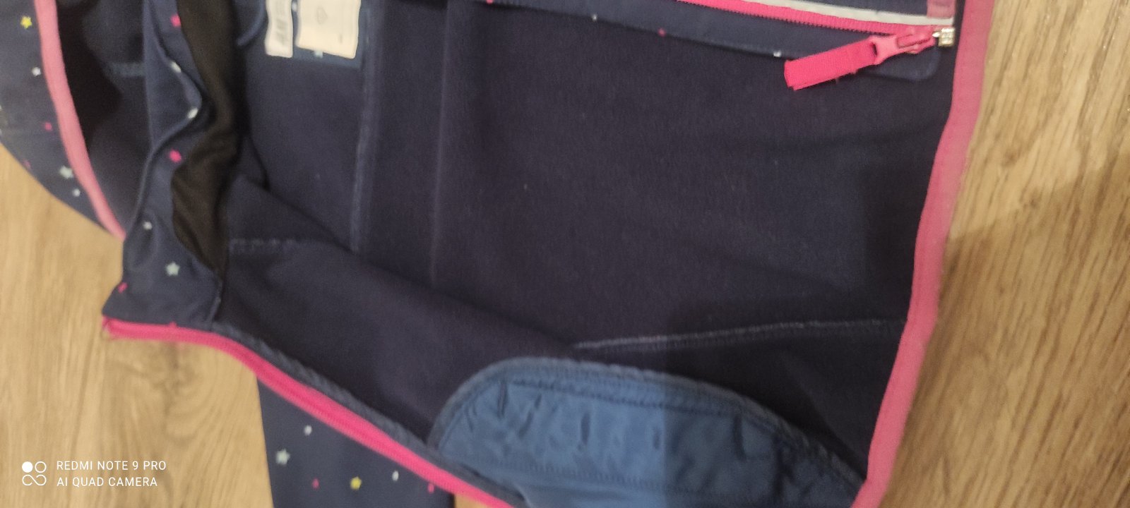 Bunda do dazda s odnimatelnou kapucnou, 98/104. Poskodenie ziadne, akurat gombiky spredu zosuchane asi pranim. Sirka 37, rukav po plece 40, dlzka 47 cm