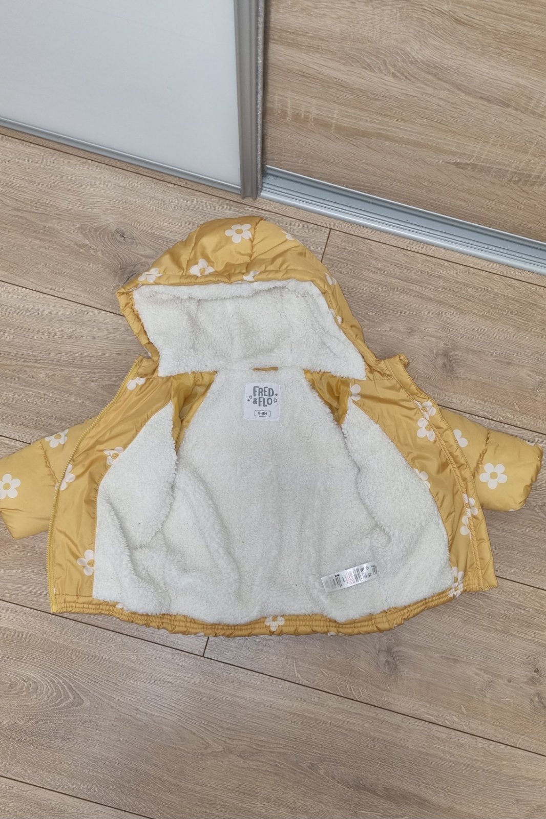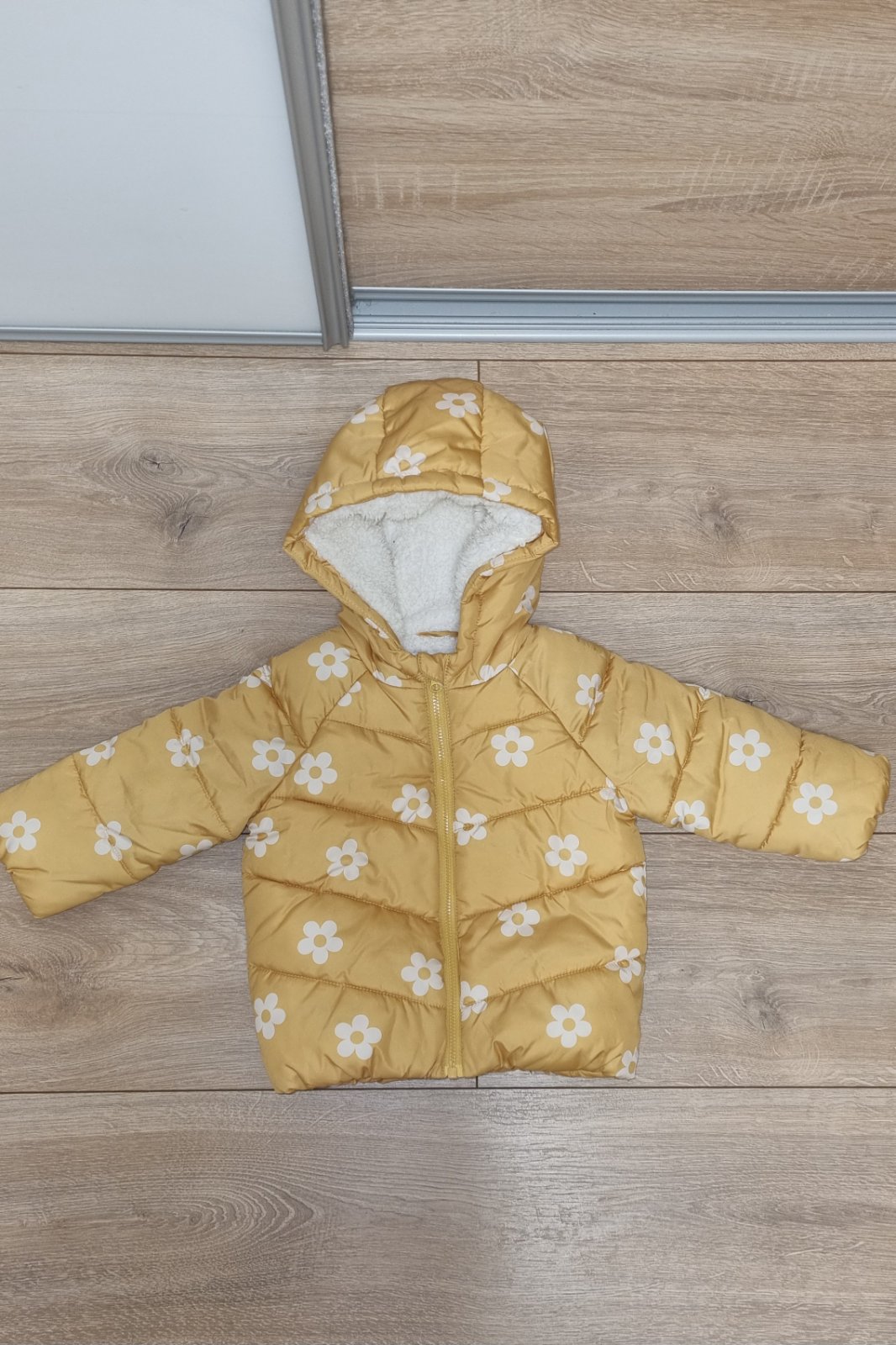 Dievčenská bundička v dobrom stave po jednom dieťati, bez poškodení, veľkosť 74, dĺžka od ramien 34cm, dĺžka rukáva 30cm