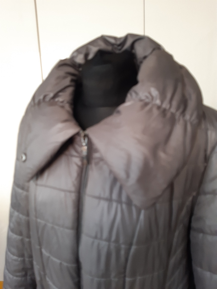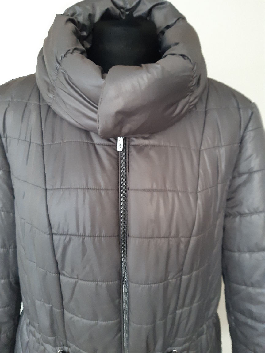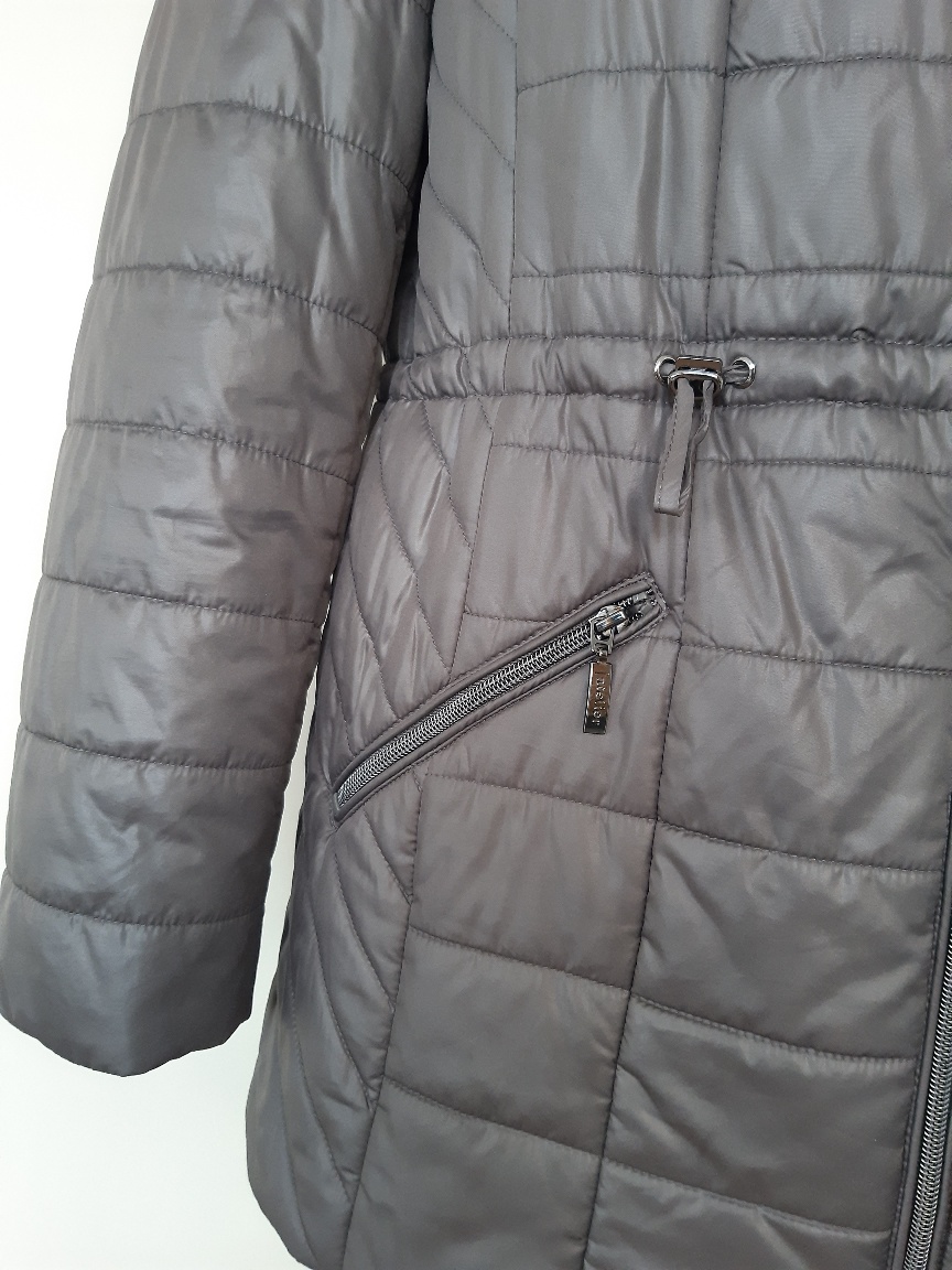 Zateplená bunda, nie veľmi hrubá, vhodná na miernejšiu až teplú zimu, stredne šedej farby. Značka atelier. Bunda je vo výbornom stave, bez známok použitia. Dl. 78 cm, dl. rukáva62 cm, šírka v podpáži 56x2 cm, boky 57x2 cm. Farba je pekná, ale zle sa mi fotilo, vyzerá na fotkách do hnedej farby, kaki, mení sa.
