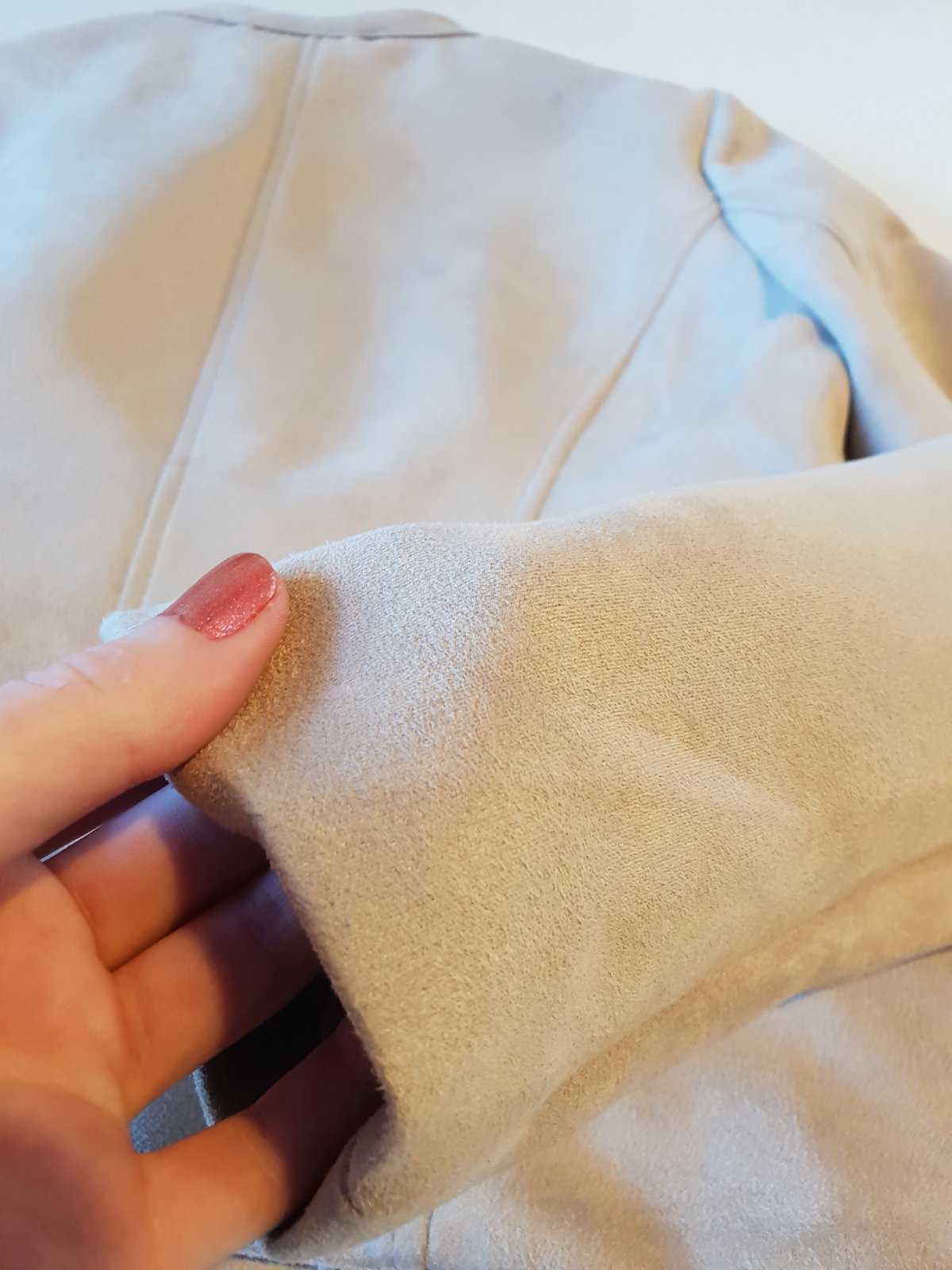 Nová, len vyskúšaná. Nestihla som ju vrátiť, prešlo 30 dní. Materiál príjemný semiš.