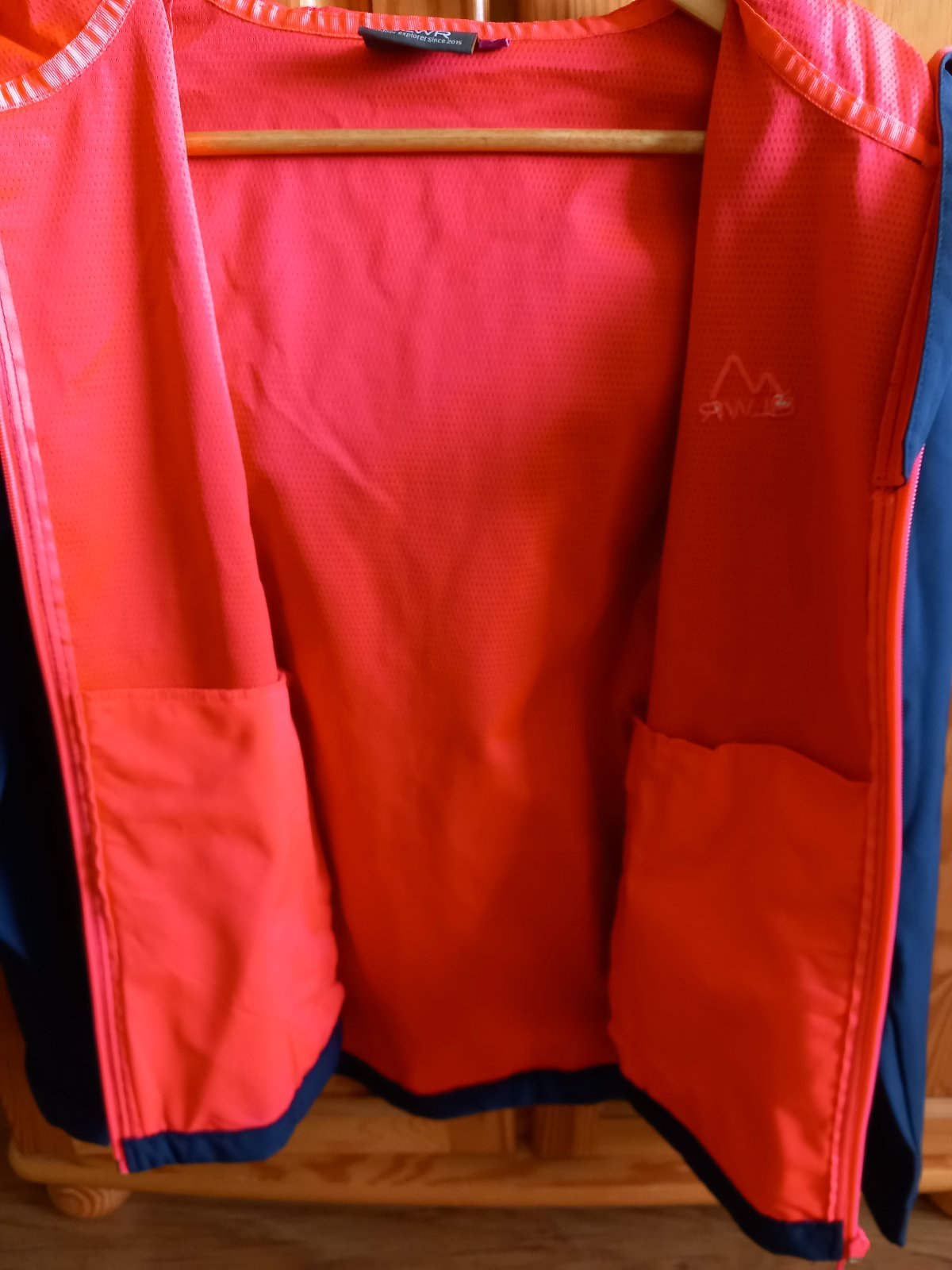 Vetrovka je tenšia,ale vhodná aj na prechodné obdobie.Je prinesená zo zahranička značka BLWR.Je bez poškodení.Olemovaná je ružovou farbou.S kapoucňou.Rukávy sa dajú stiahnuť suchým zipsom.