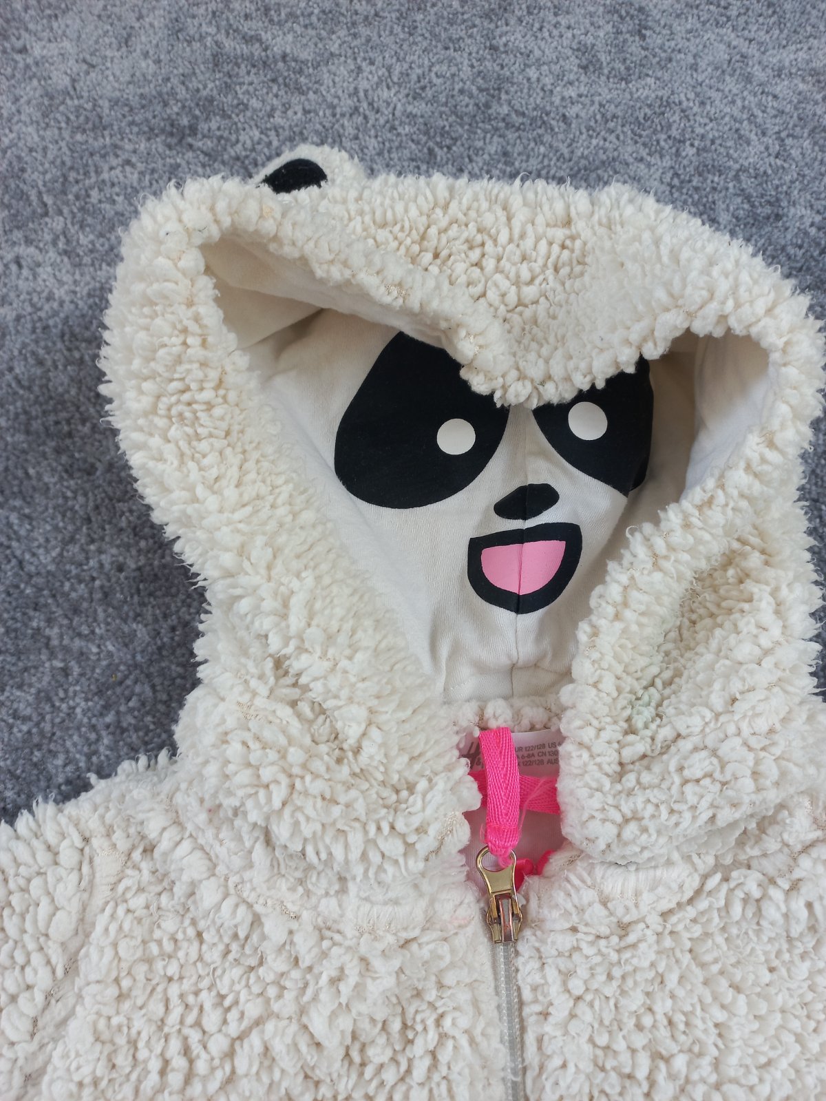 Nosena hunata bundicka Panda, kapucna sa da odopnut, H&M, 122/128, pekny noseny stav.
