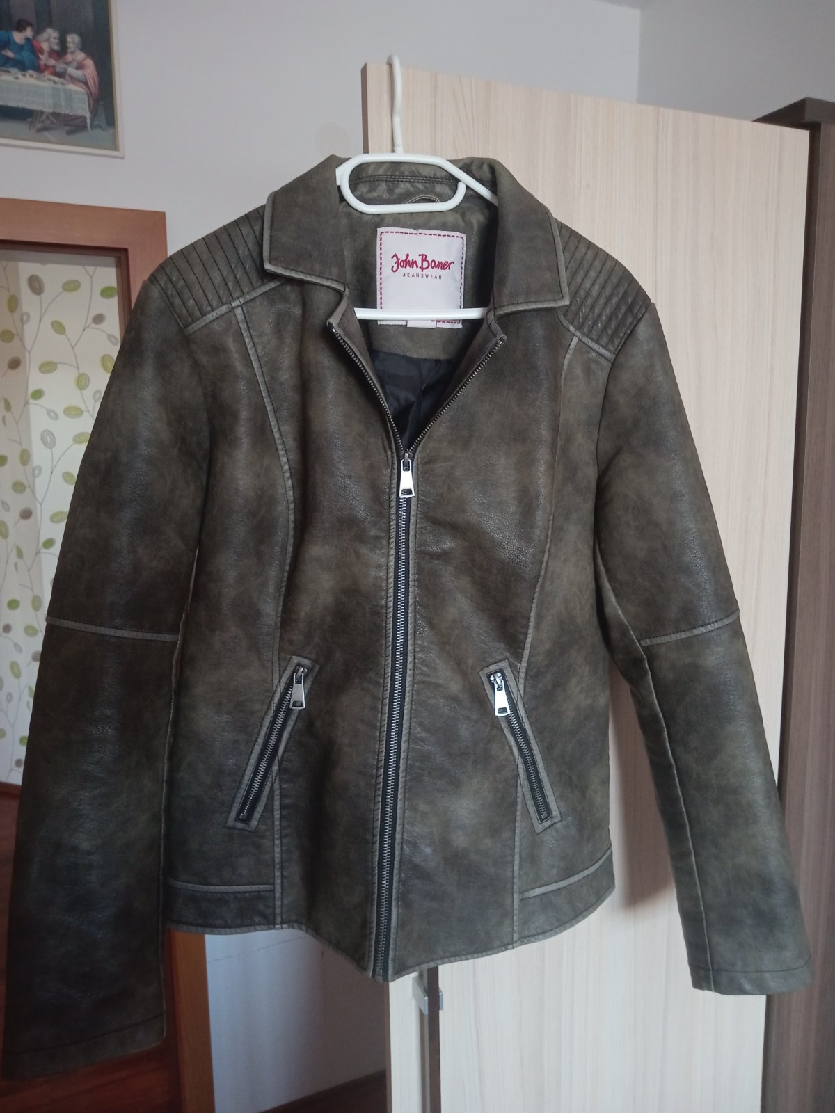 dobrý nosený stav bez poškodení, šírka-50cm, šírka v pleciach-44cm, dĺžka-57cm,rukáv od pleca-67cm