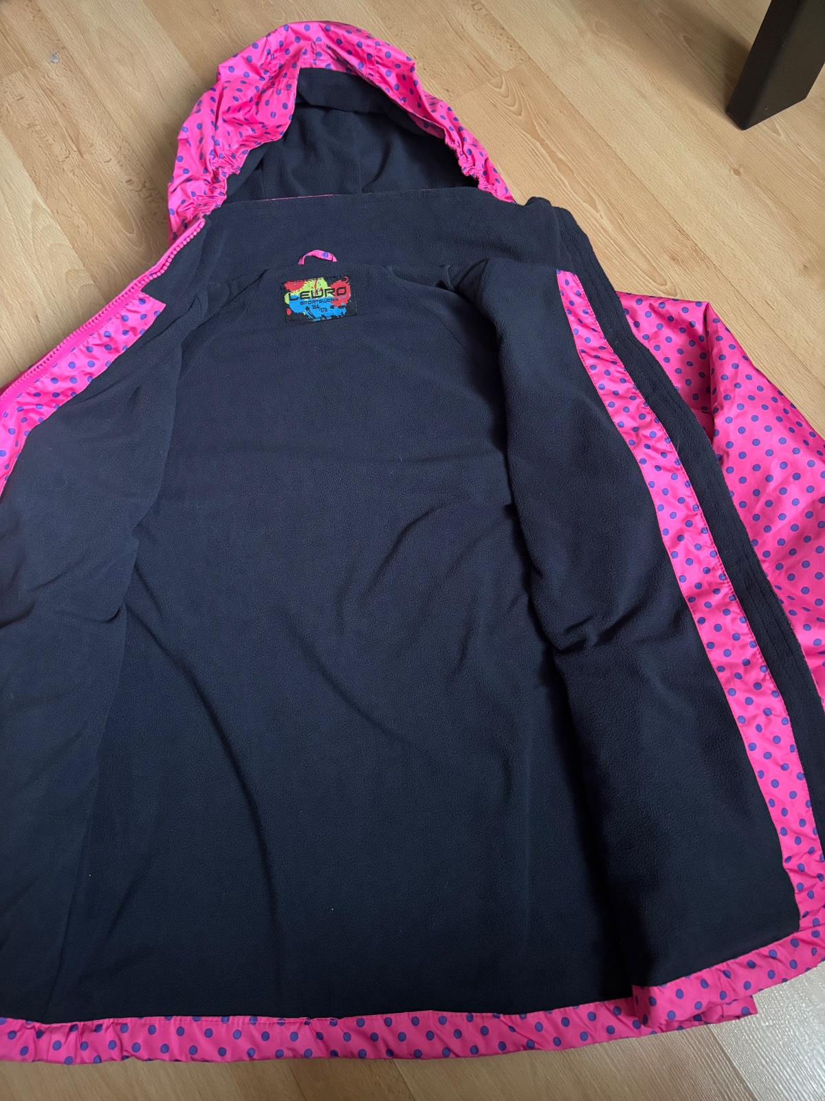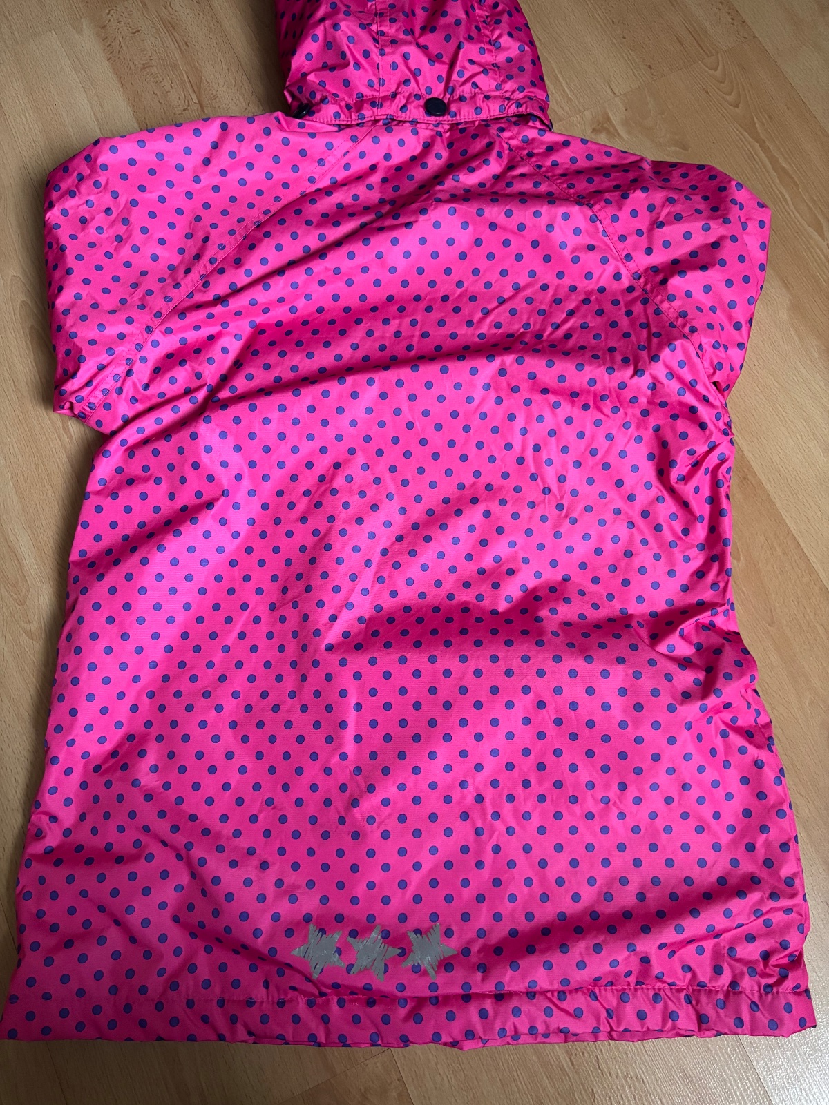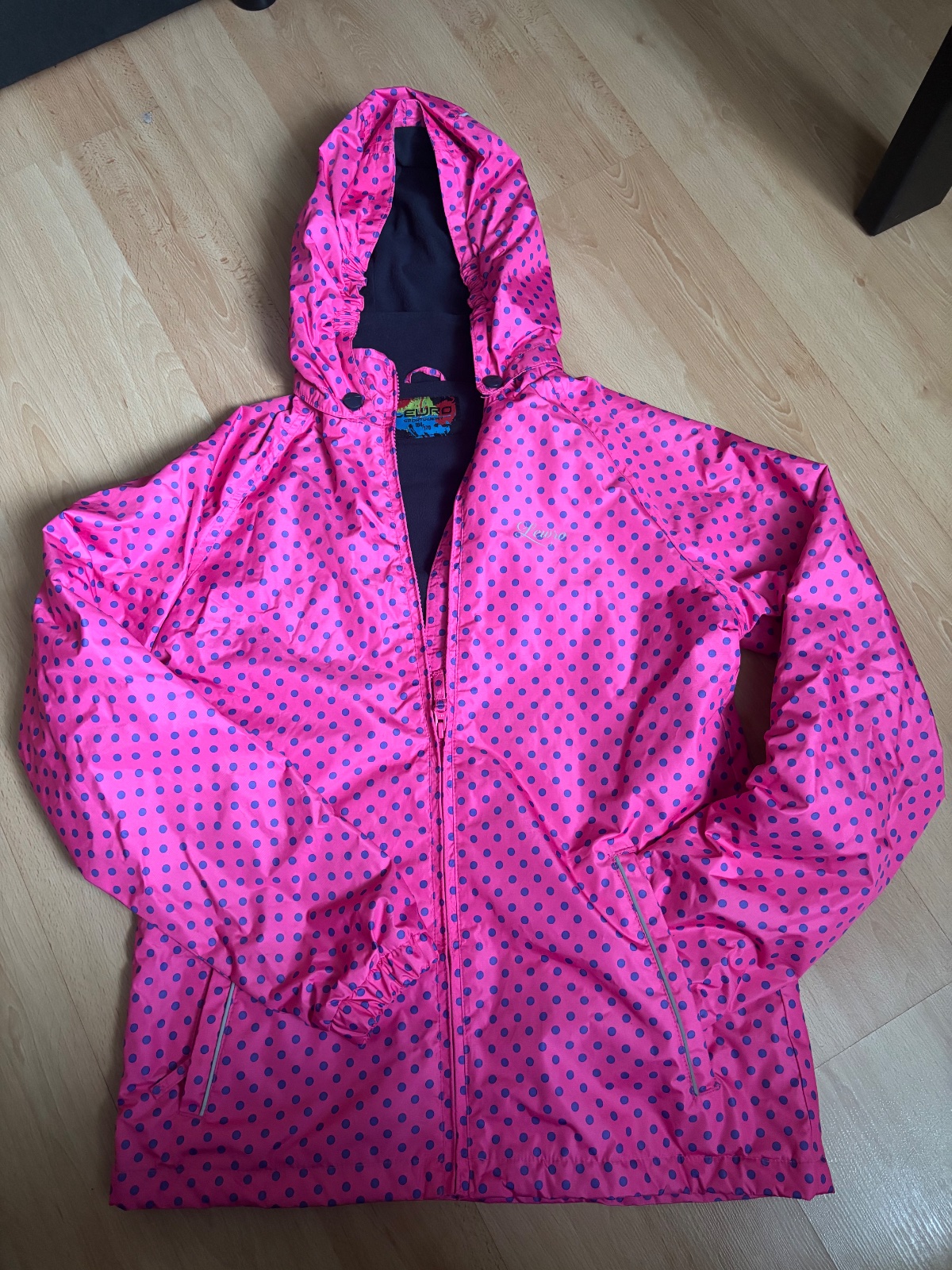 Krásna bundička s drobnými srdiečkami pre slečnu.top stav.v golieri je aj kapucňa,žiadny číňan,krásne šitie,reflexné prvky, lahučká vždy po ruke. Mali sme možno 3-4x oblečené.odporucam