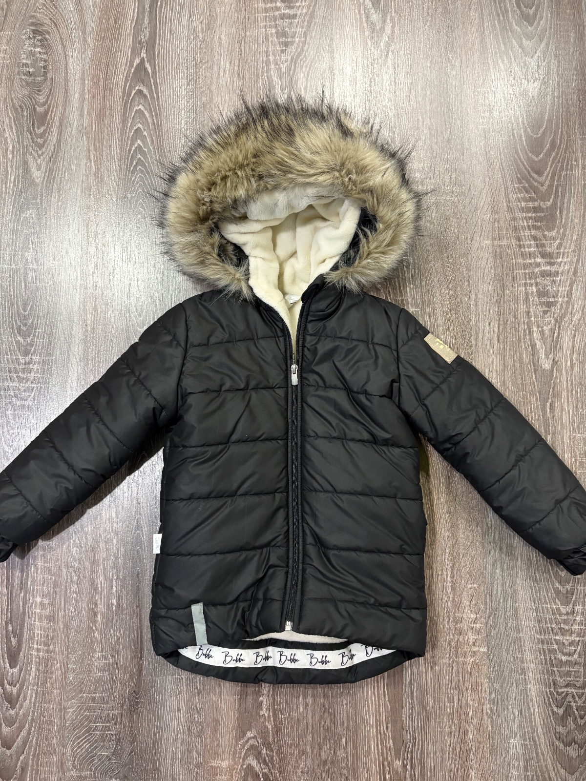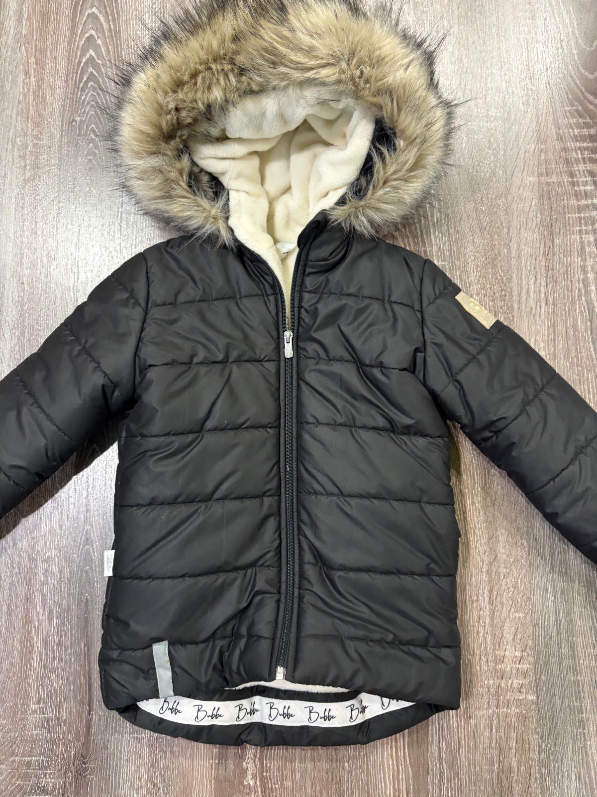 99.Bubbe zimna detska vetrovka s kozusinou na kapucni,ktora sa da odopnut,predlzeny strih,velkost 104/110.Super stav ako nová.Dlzka prednej casti je 50cm,zadnej je 58cm,dlzka rukava od krku je 54cm a sirka v podpazusi je 38x2cm