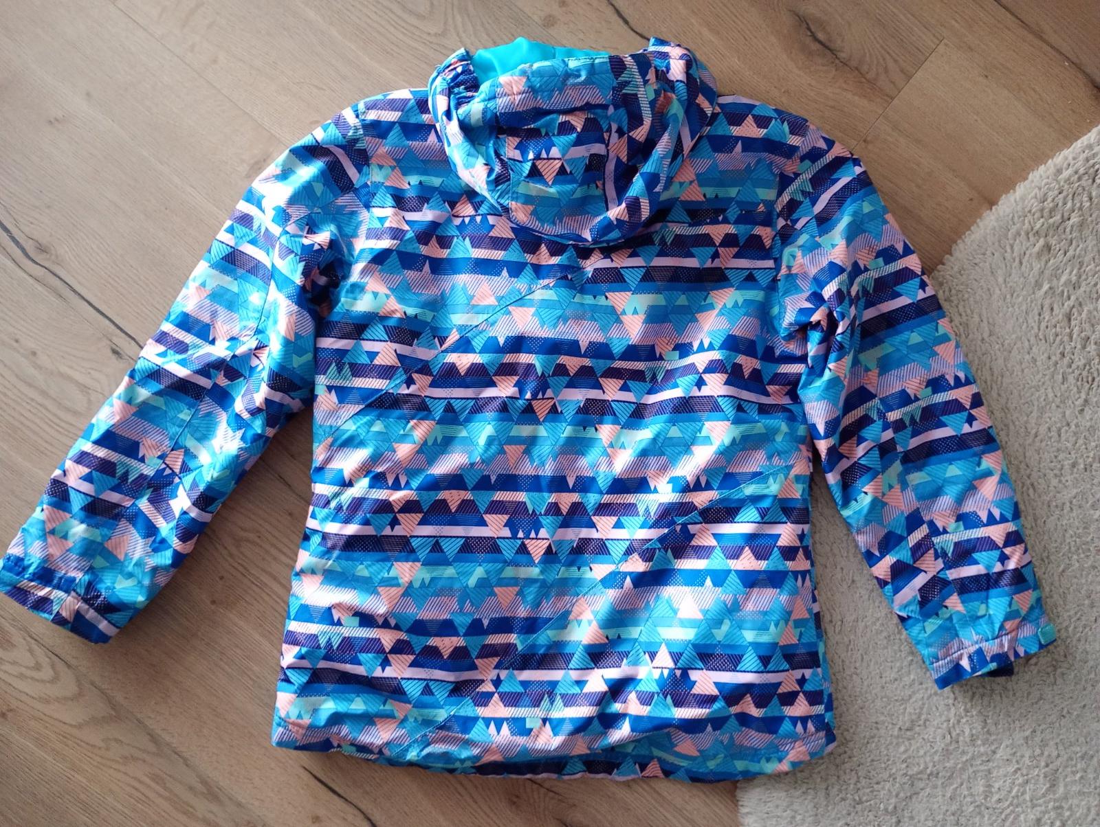 Posúvame veľmi peknú športovú bundu,má lyžiarsky pás, teplá, nepremokavá,v.158,ale je menšia,premerajte:dĺžka od kapucne vpredu 61cm,vzadu 66cm,šírka popod pazuchy 52cm a rukáv od kapucne 63cm,od pazuchy 43cm...