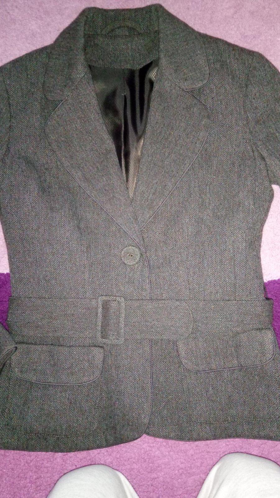 Vlnený krátky kabátik s kapucňou obsah vlny 70%,S/M pekne tvaruje postavu
