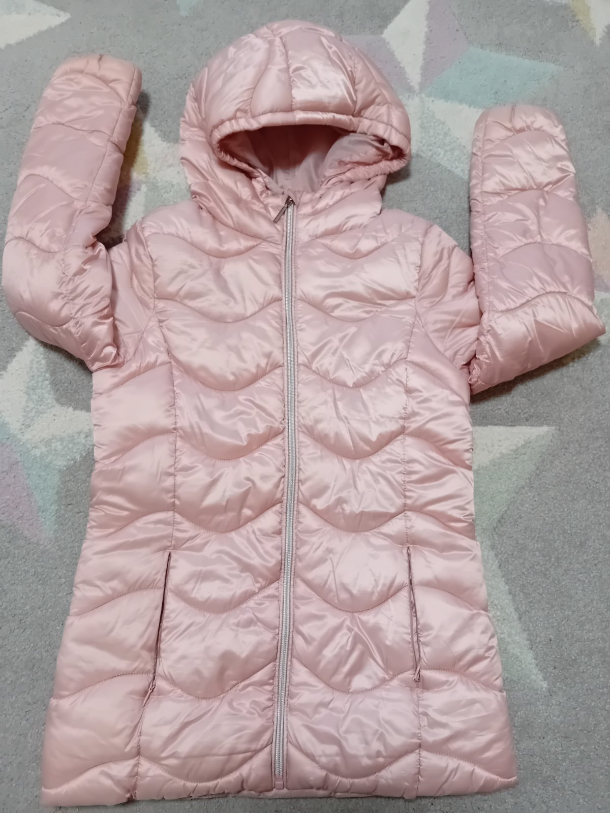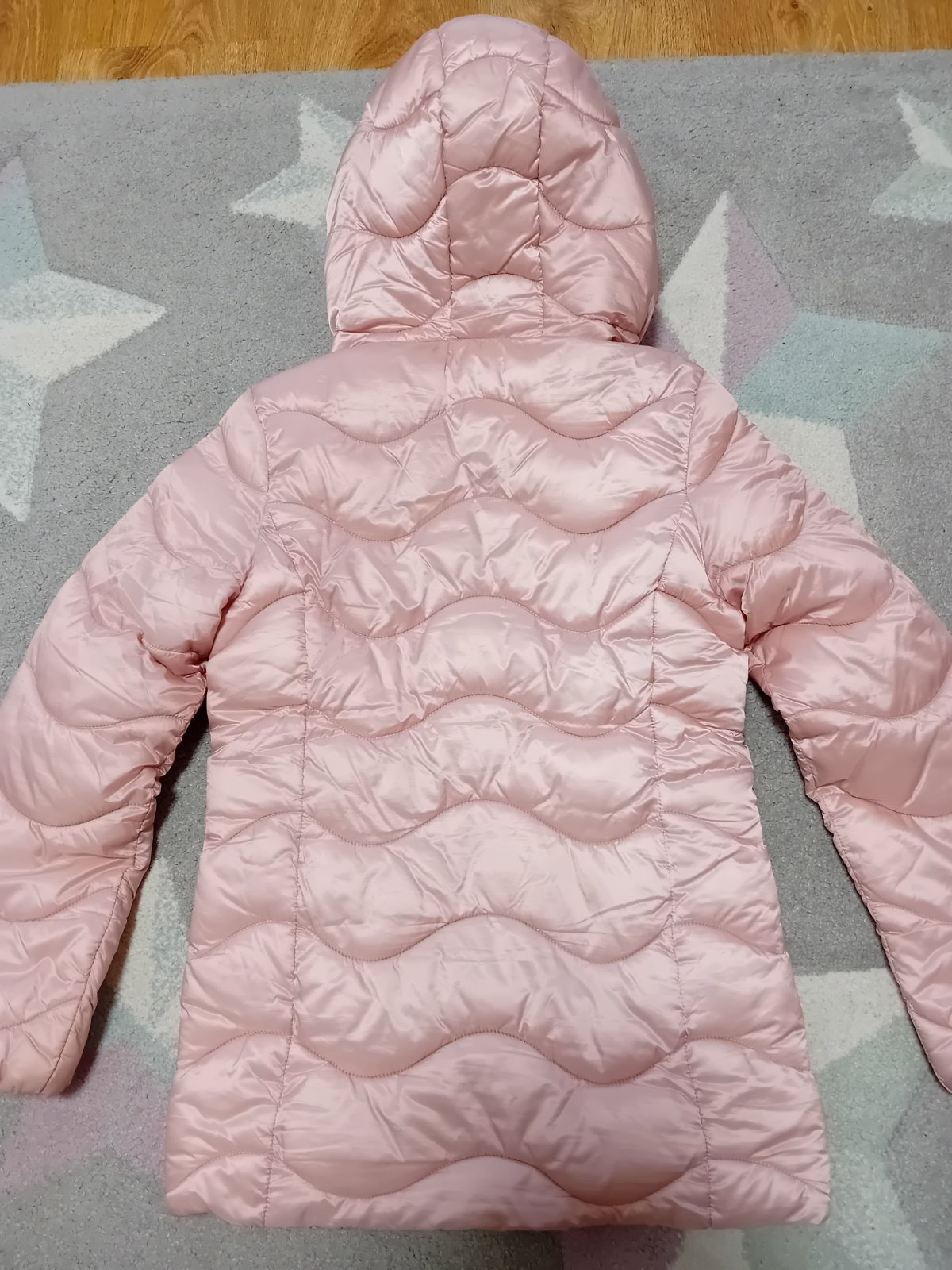 Ružová prechodná bunda veľkosť 146, zn. Reserved, výborný stav. Je perleťovo-ružovej metalickej farby. Rozmery: šírka pod pazucham: 2x43 cm dĺžka: 53 cm dĺžka rukáva úplne od krku: 64,5 cm
