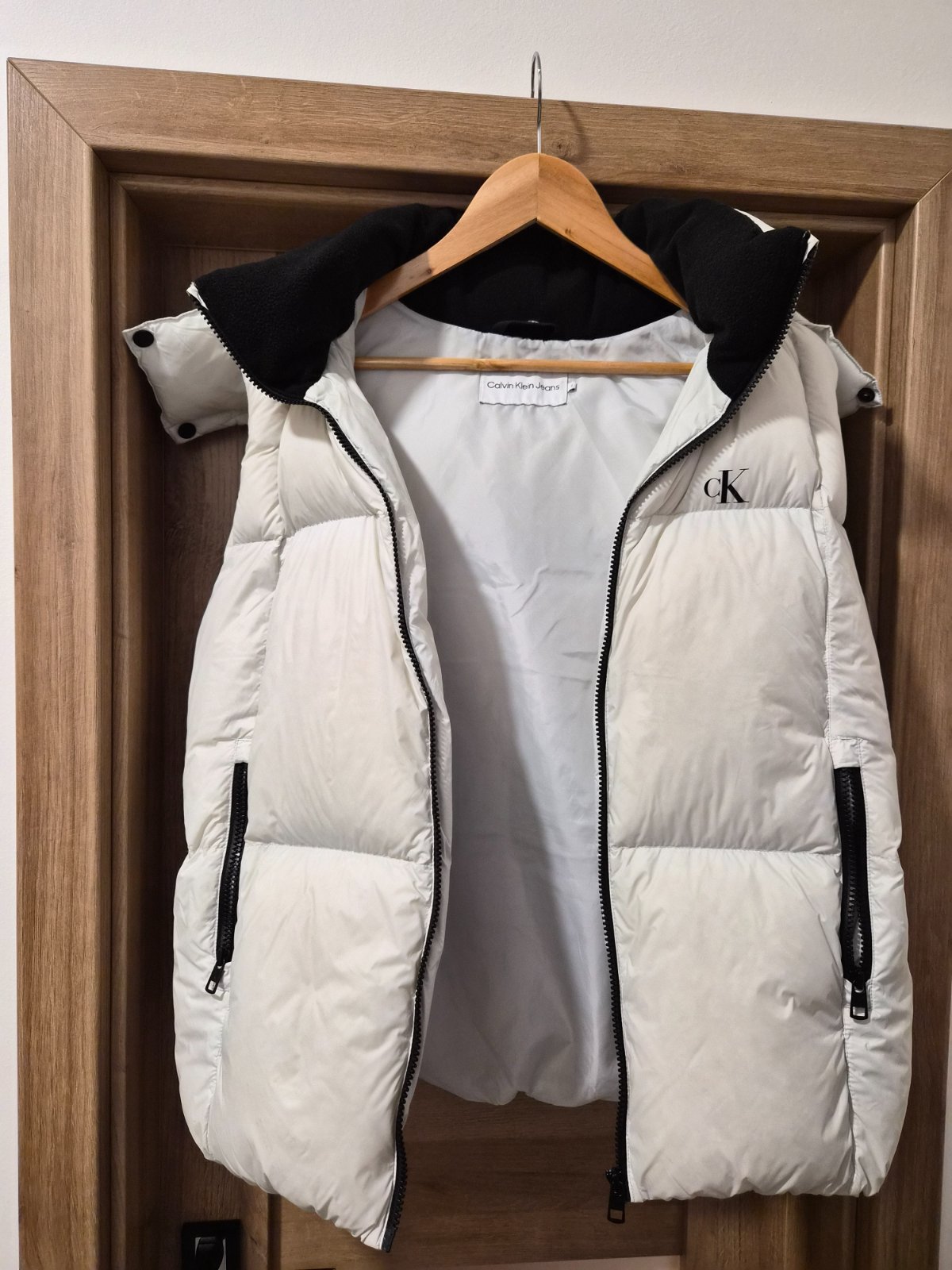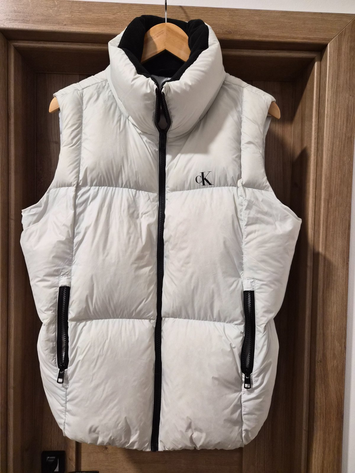 Veľmi pekná páperova vesta,v super stave.Kapucňa sa dá dať dolu.Vesta na zips a bočné vrecká. Je písaná veľkosť S a sedi aj na veľkosť S,M,L