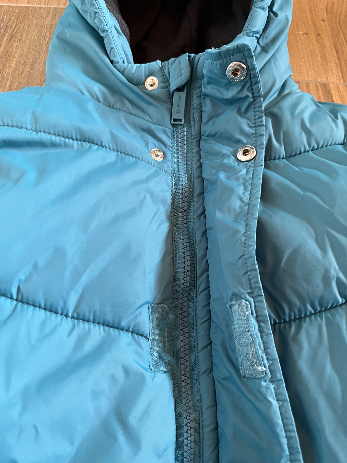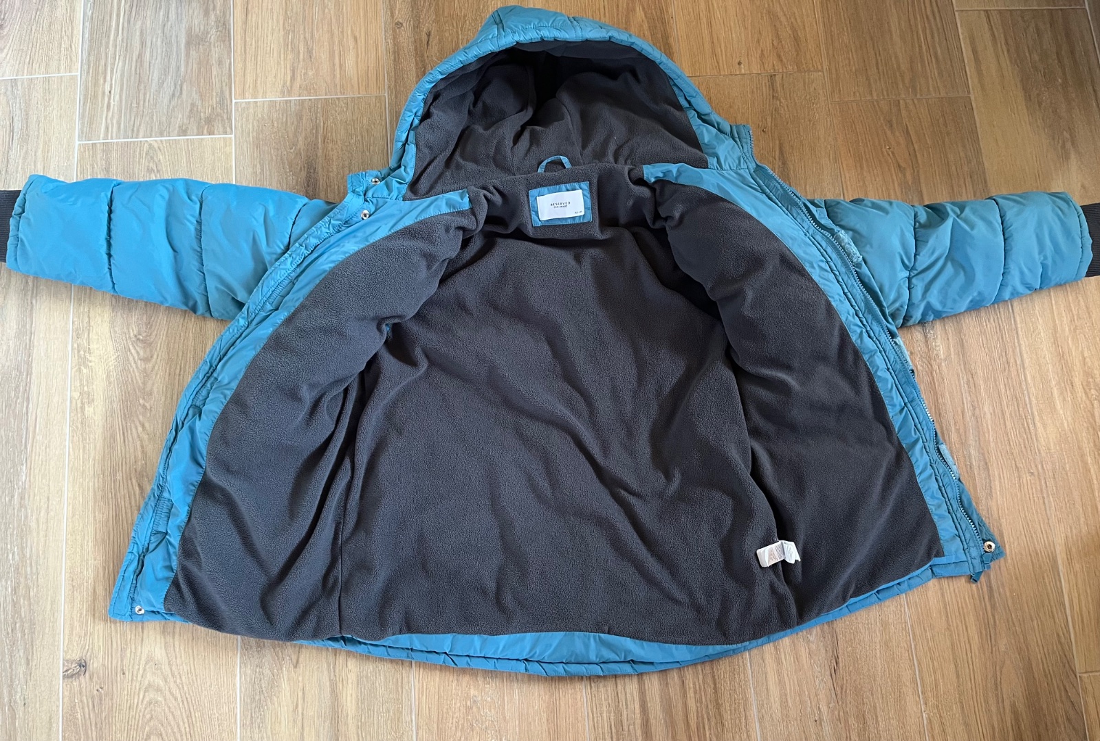 Zateplená bunda Reserved s kozusinou nepremokavá Modro-zelena veľkosť 152,158 Kávová veľkosť 164 Veľká kapucňa s odnímateľnou kožušinou Dlhé rukávy s prúžkovanými manžetami Dve našité vrecká na p...