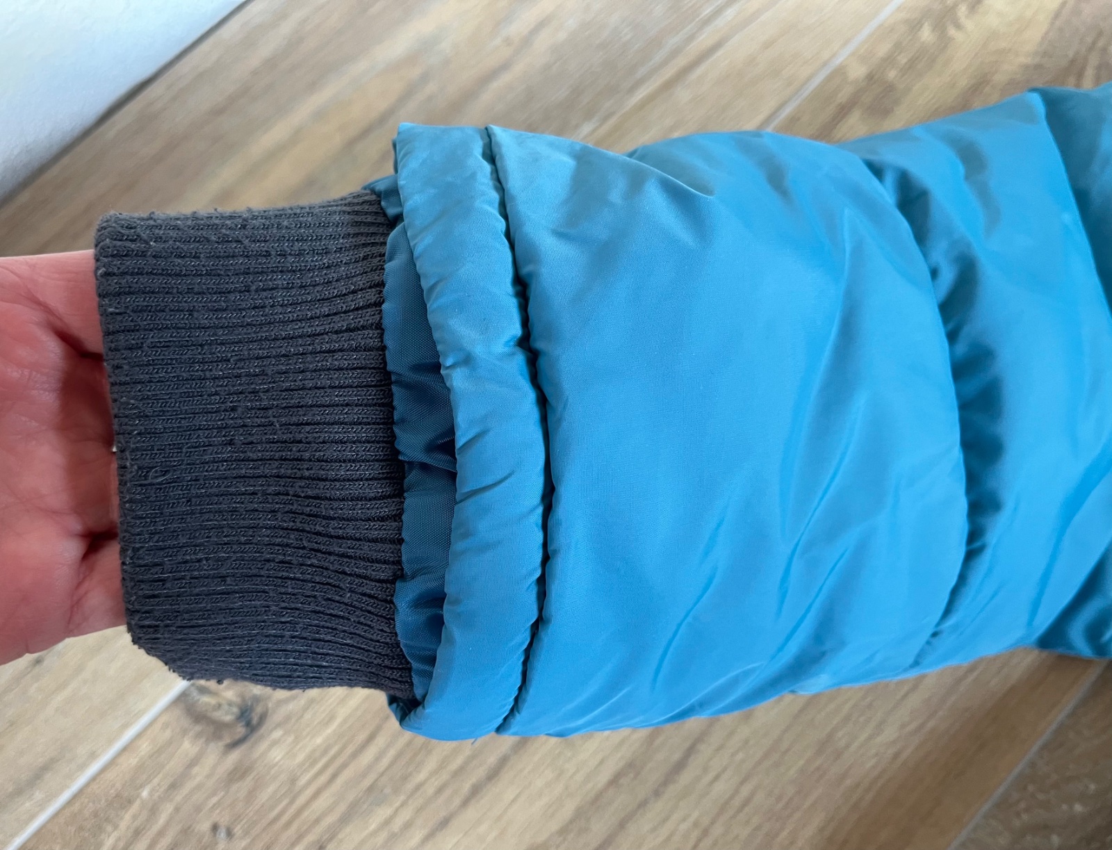 Veľmi dobrý stav, bez vád, dĺžka vpredu 63 cm, šírka pod pazuchami 51 cm, plece 11,5 cm, rukáv 53 cm + 4 cm vytŕča vnútorná manžeta. Zvnútra je flís.