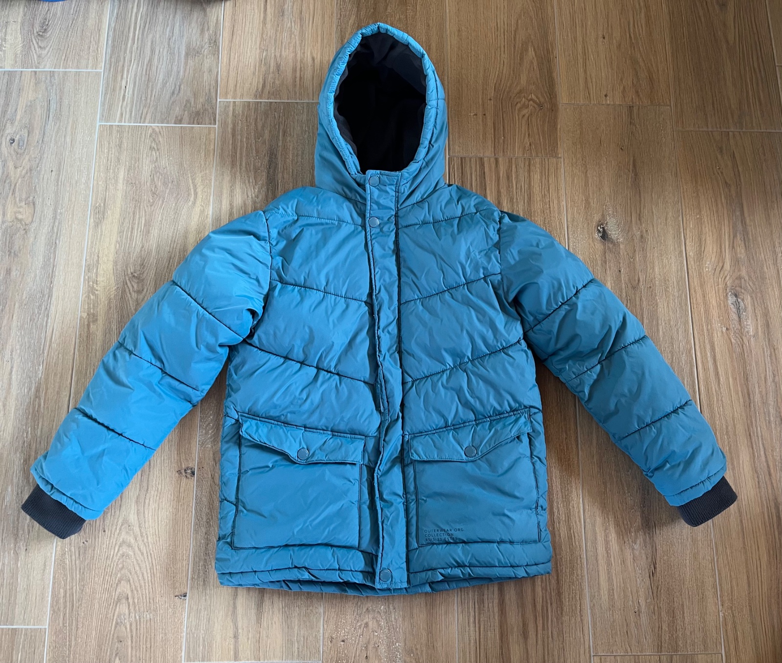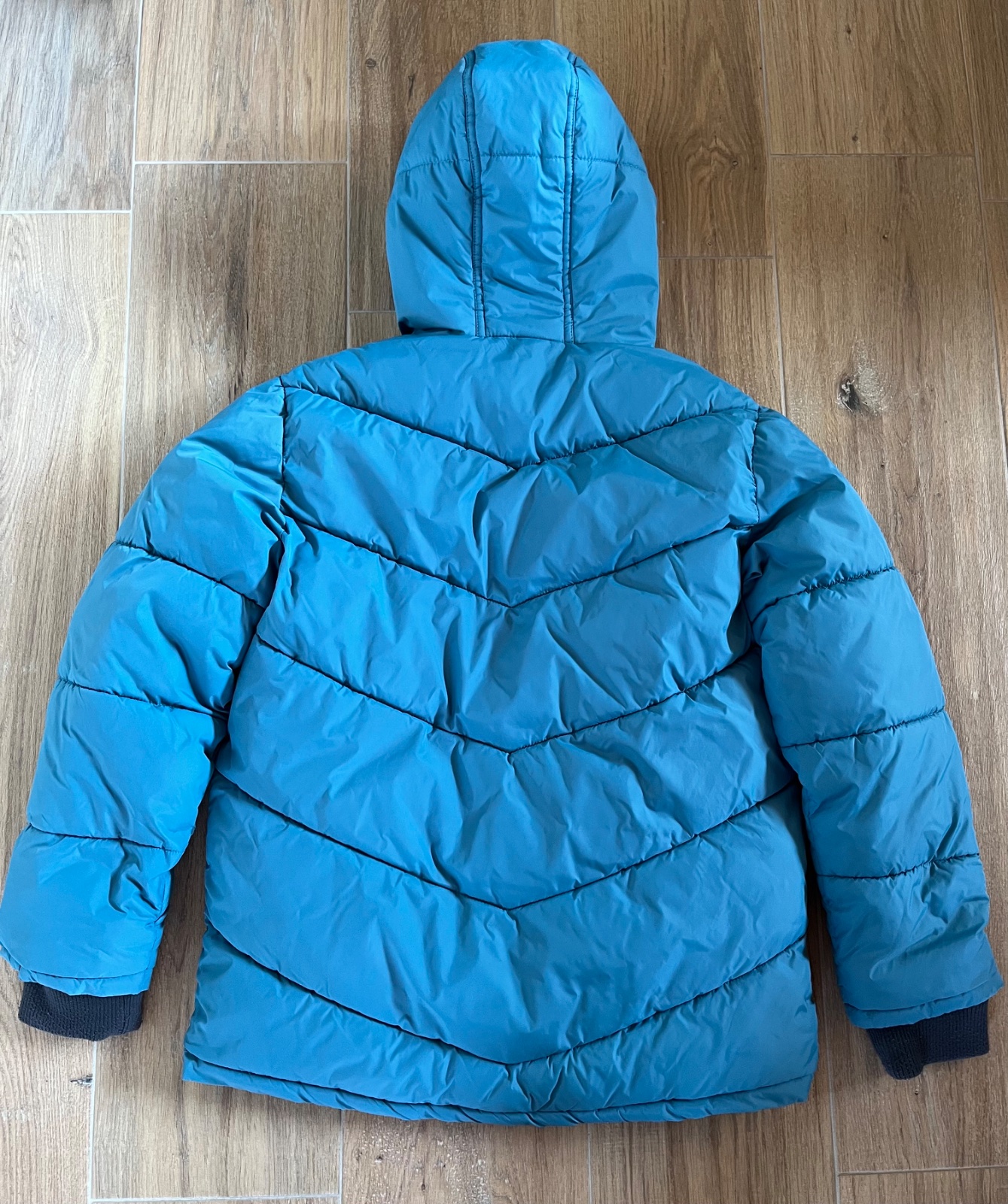 Zimná bunda v TOP stave. Teplá, podšita dekovinou, na rukávoch patent, kapucňa sa nedá odobrať. Rozmery: širka pod pazuchami 60, celková dĺžka 65 cm, dĺzka rukáva od krku 66 cm.