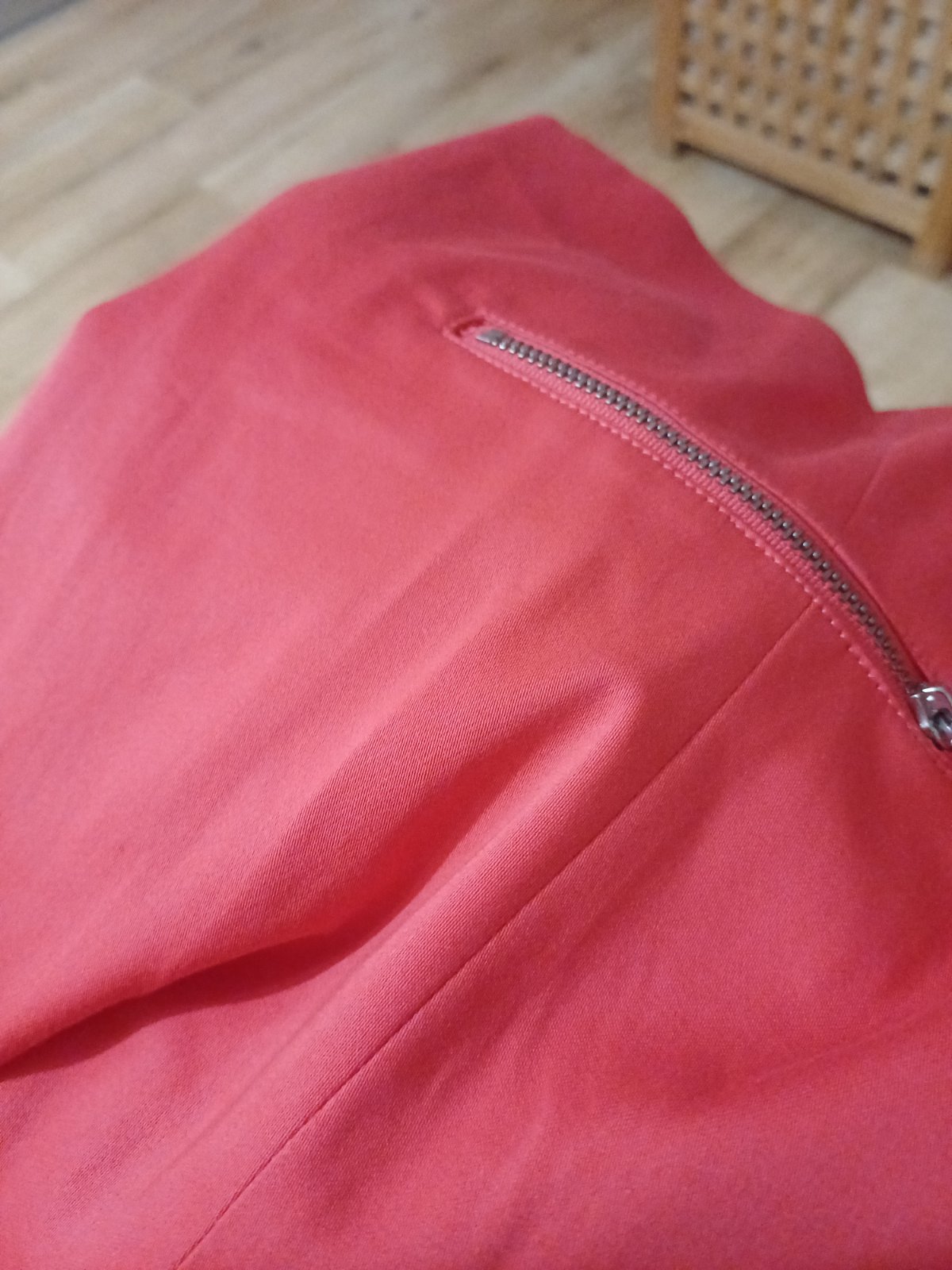 Krasne, ako nové. Zadna dlzka 55 cm, predna na tych cipoch 60 cm, rukáv od pleca 61 cm, sirka cez prsia 50x2 cm. Farba je skor tmavo lososova ako na poslednej foto. Velkost uvedena 40, ale sedi na 38 skor. Ruadte sa rozmermi.