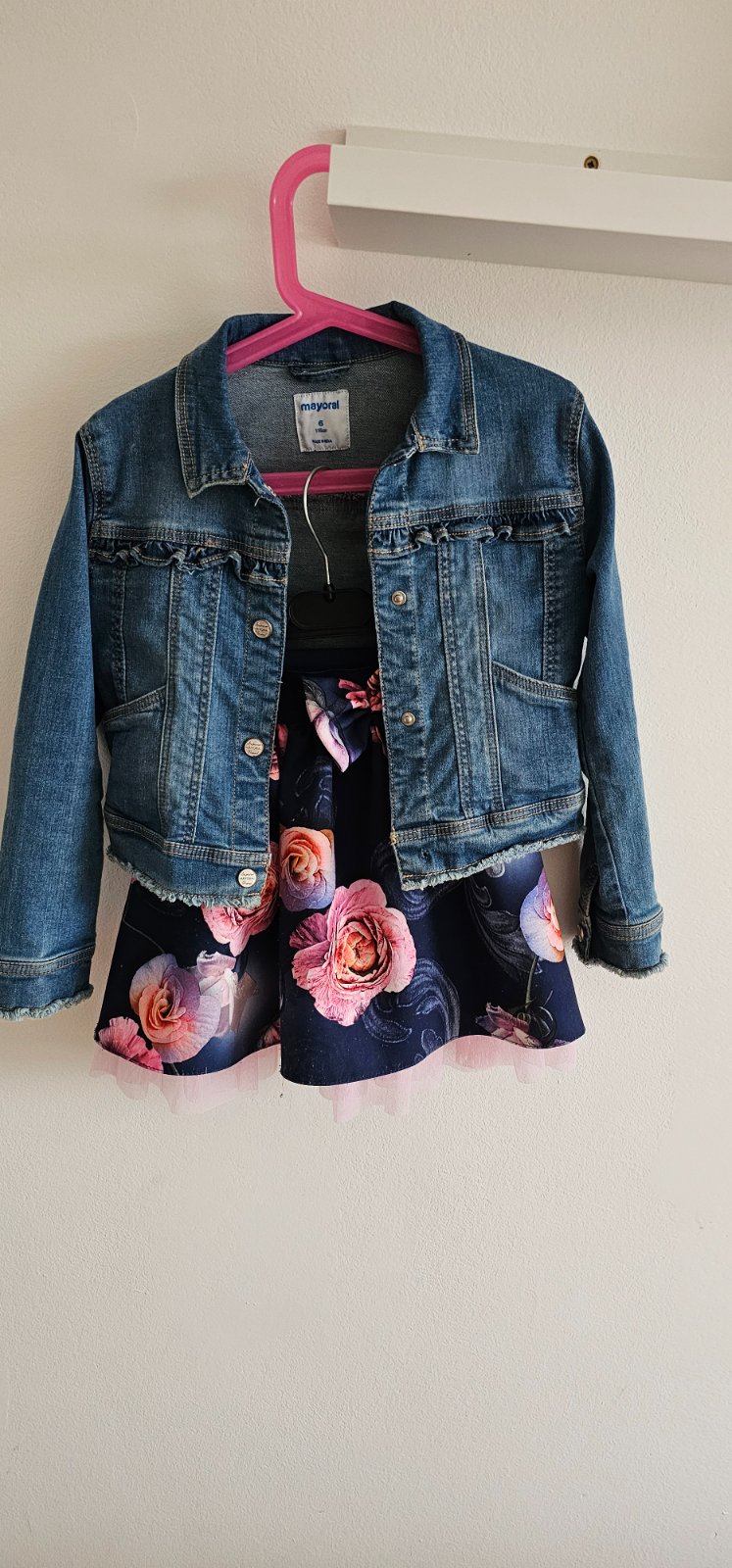 Super stav, párkrát oblečená riflová bundička Mayoral z elegantnej kolekcie Mayoral Chic. Množstvo krásnych prepracovaných detailov, okolo výstrihu volániky, riflovinové aplikácie, vyšúchané a tie...