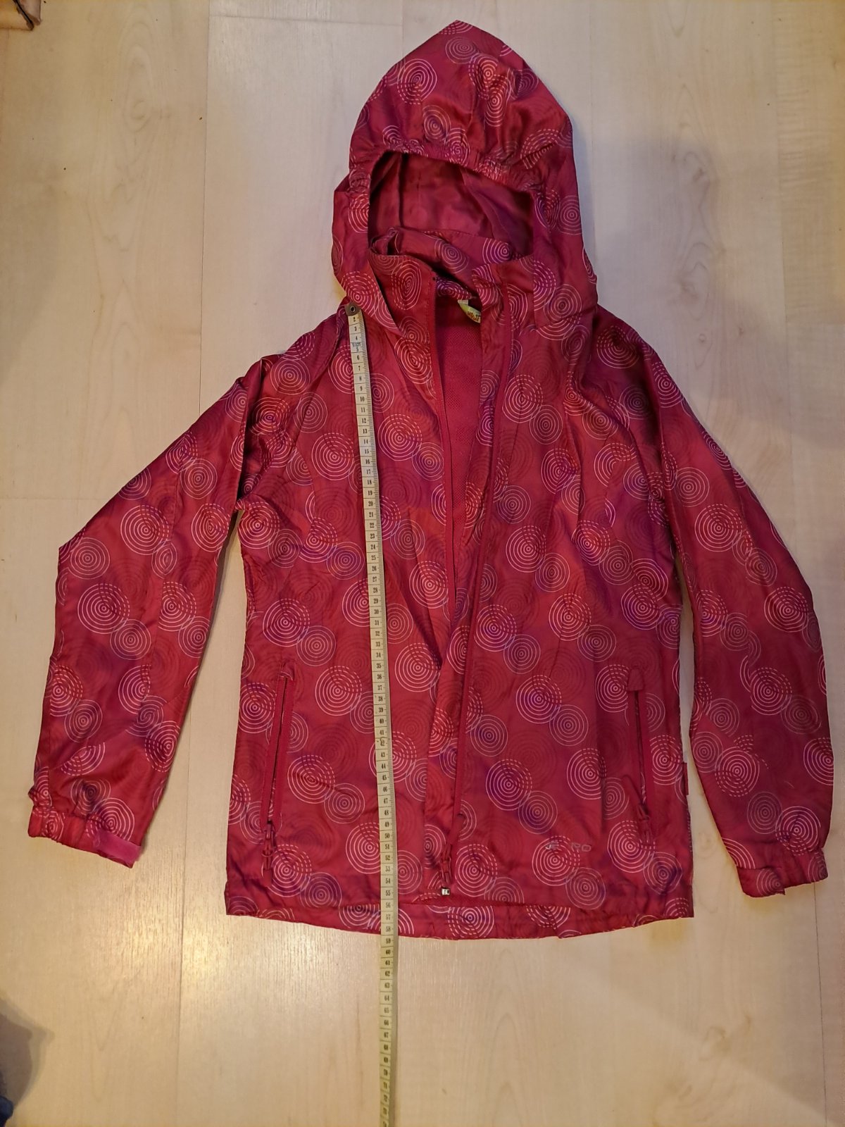 Softshelová nepremokavá bunda červenej farby značky Tchibo vo veľkosti 134/140. Bunda sa zapína na zips, má ochranu brady a tiež vrecká. Vo vnútri má flisové zateplenie a rukávy na patenty. V TOP s...