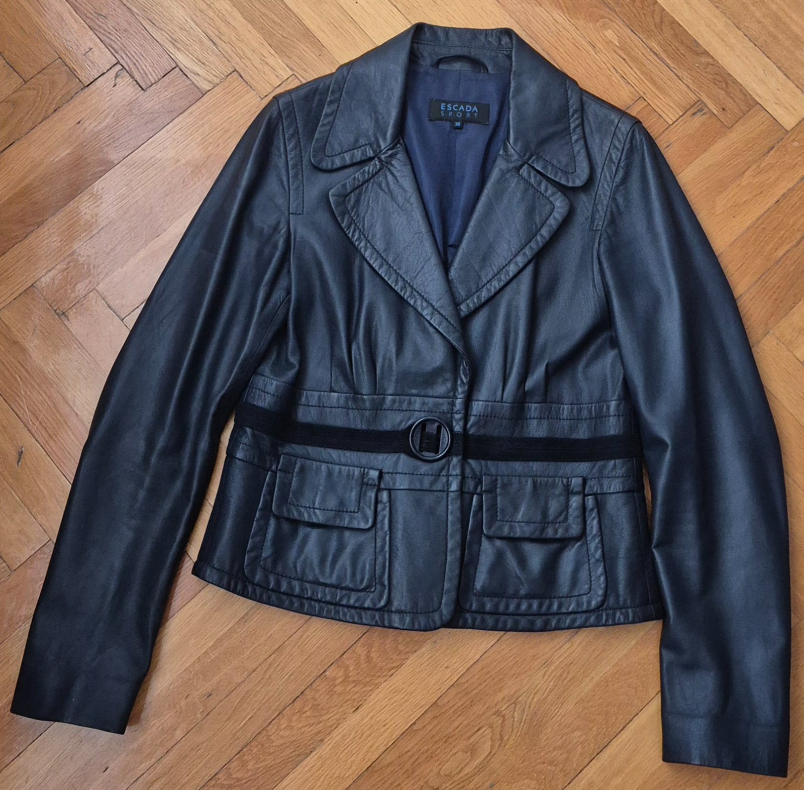 Predám málo nosené sako ESCADA Sport z jahňacej kože a v peknej sýtej tmavomodrej farbe. Sako je vo veľmi dobrom stave bez oderov alebo iných poškodení. Veľkosť 38.