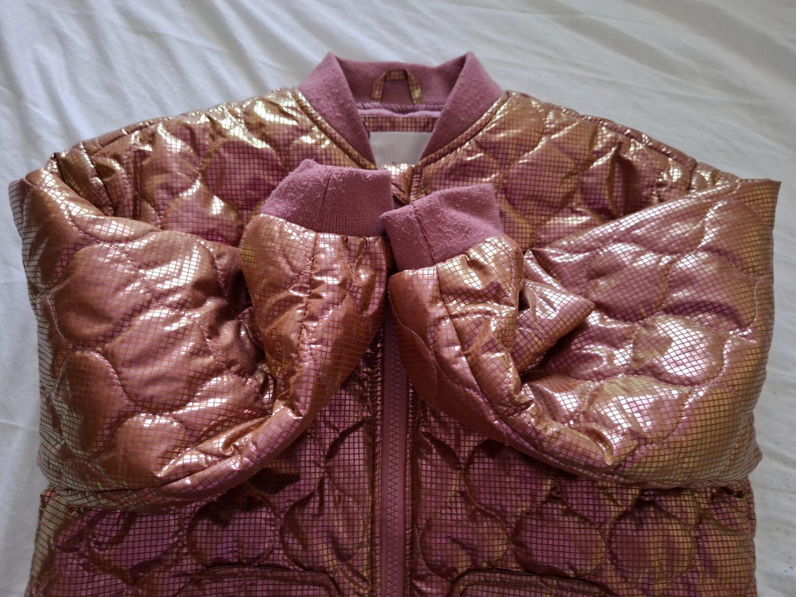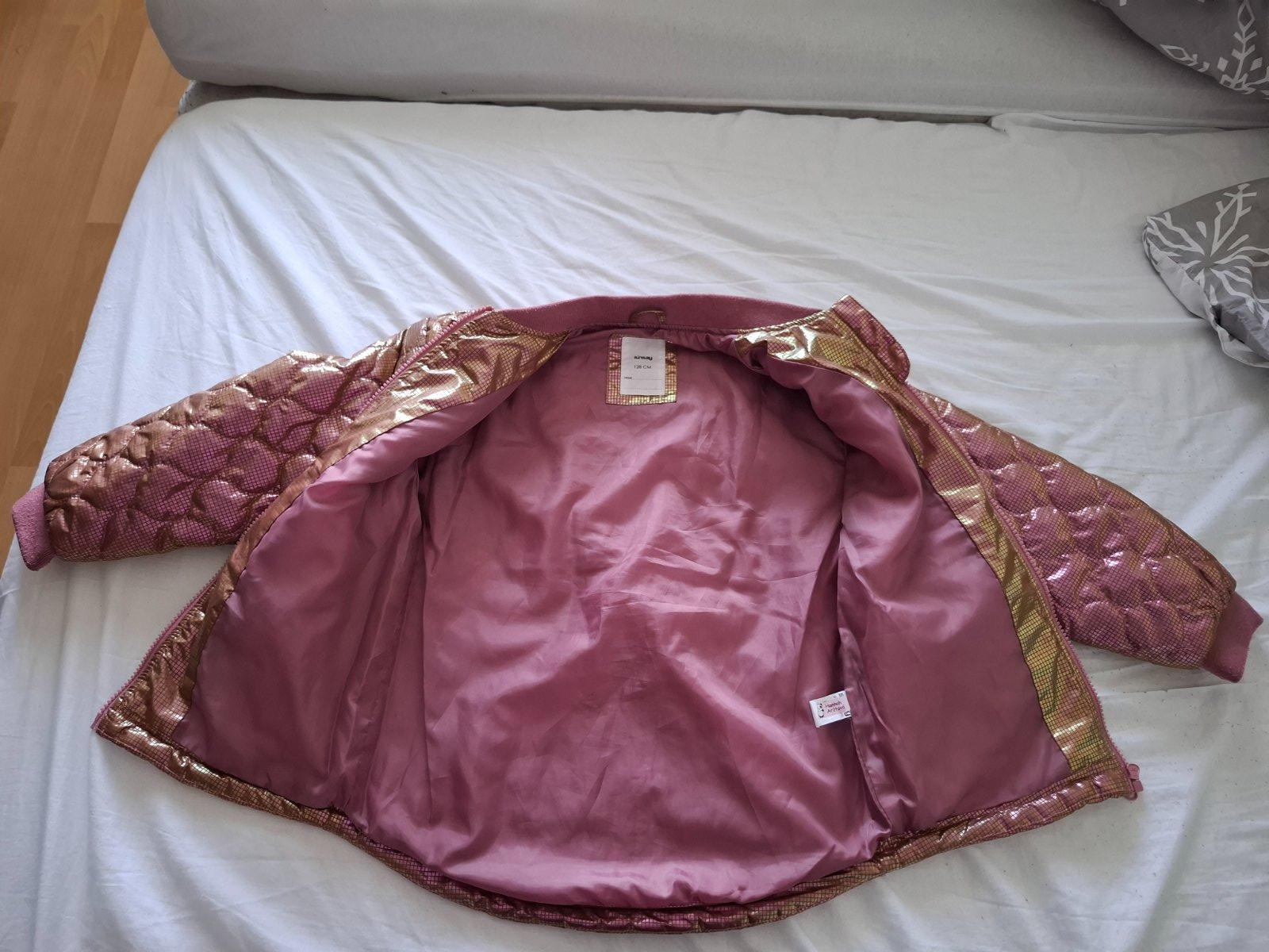 Ponúkam na predaj peknú bundu po dcérke, kupovaná nová, nosená príležitostne, obľúbená. Farba taká ružová lesklá. Vzadu predĺženie.