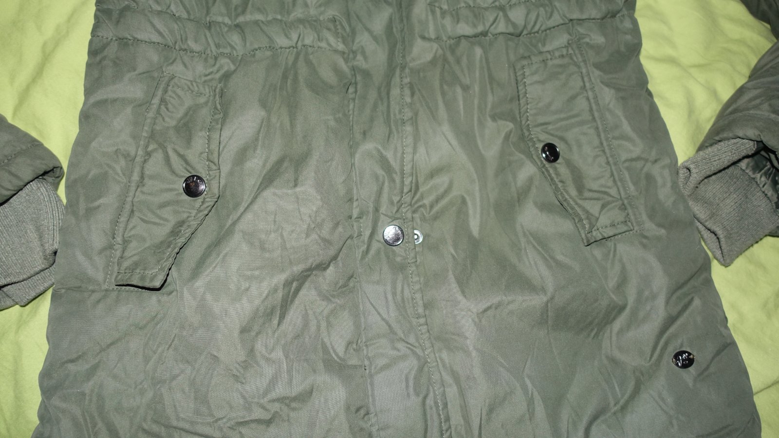 Pekna bundicka na zimu vo velmi dobrom stave- avsak takmer ziadny z cvokov na bunde nefunguje- zapina sa na zips, takze to nie je az taky problem, je to skor esteticka vada.