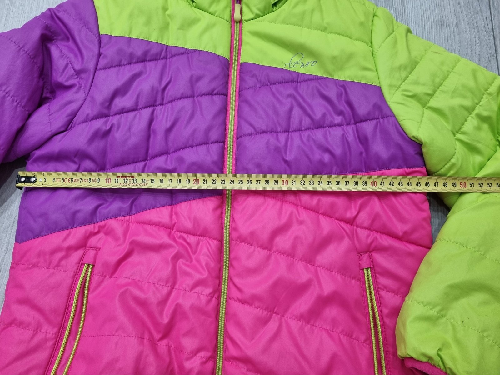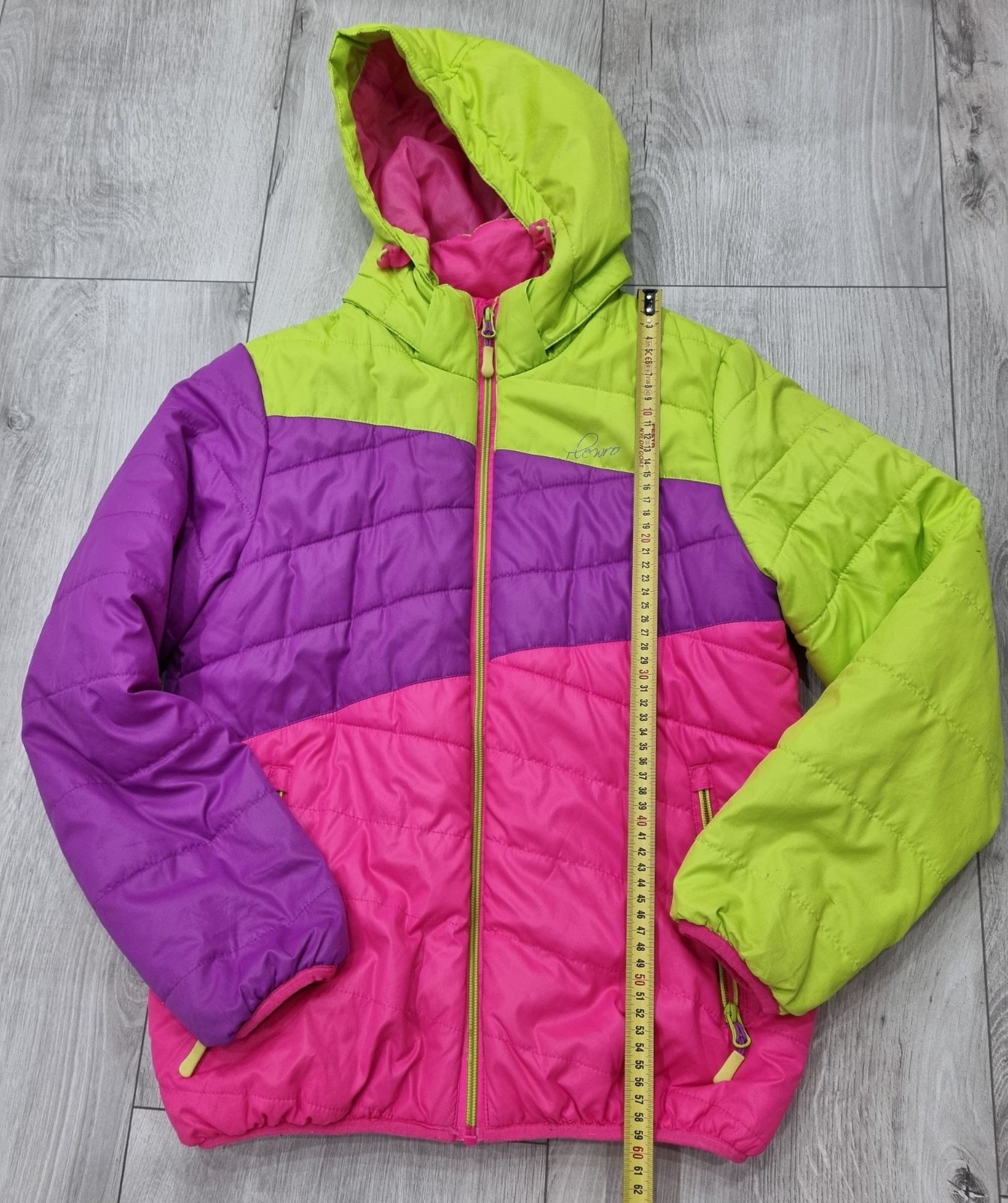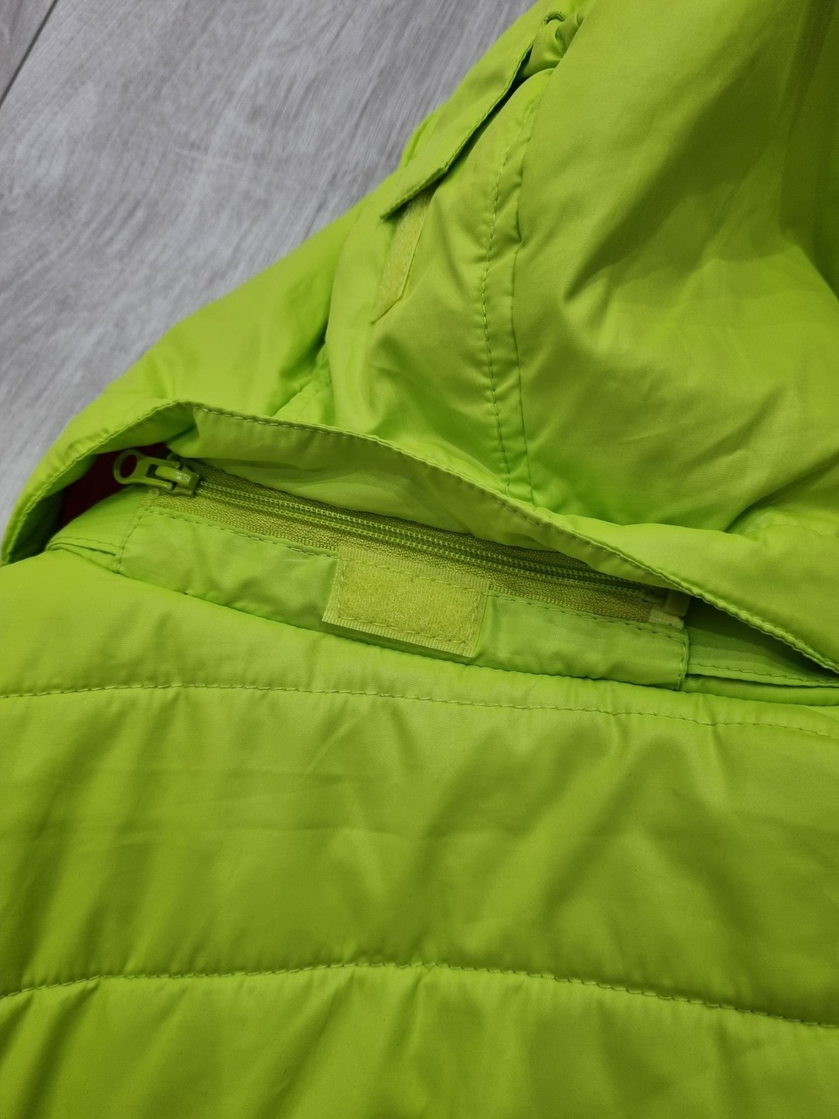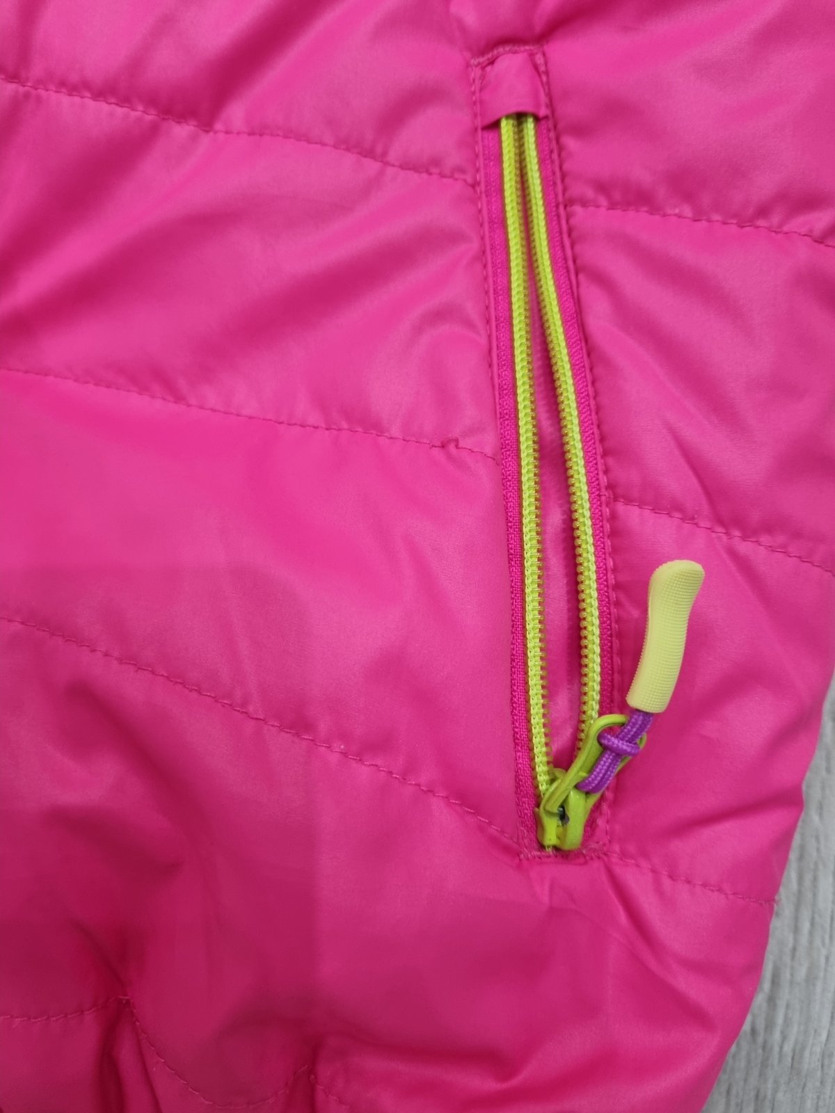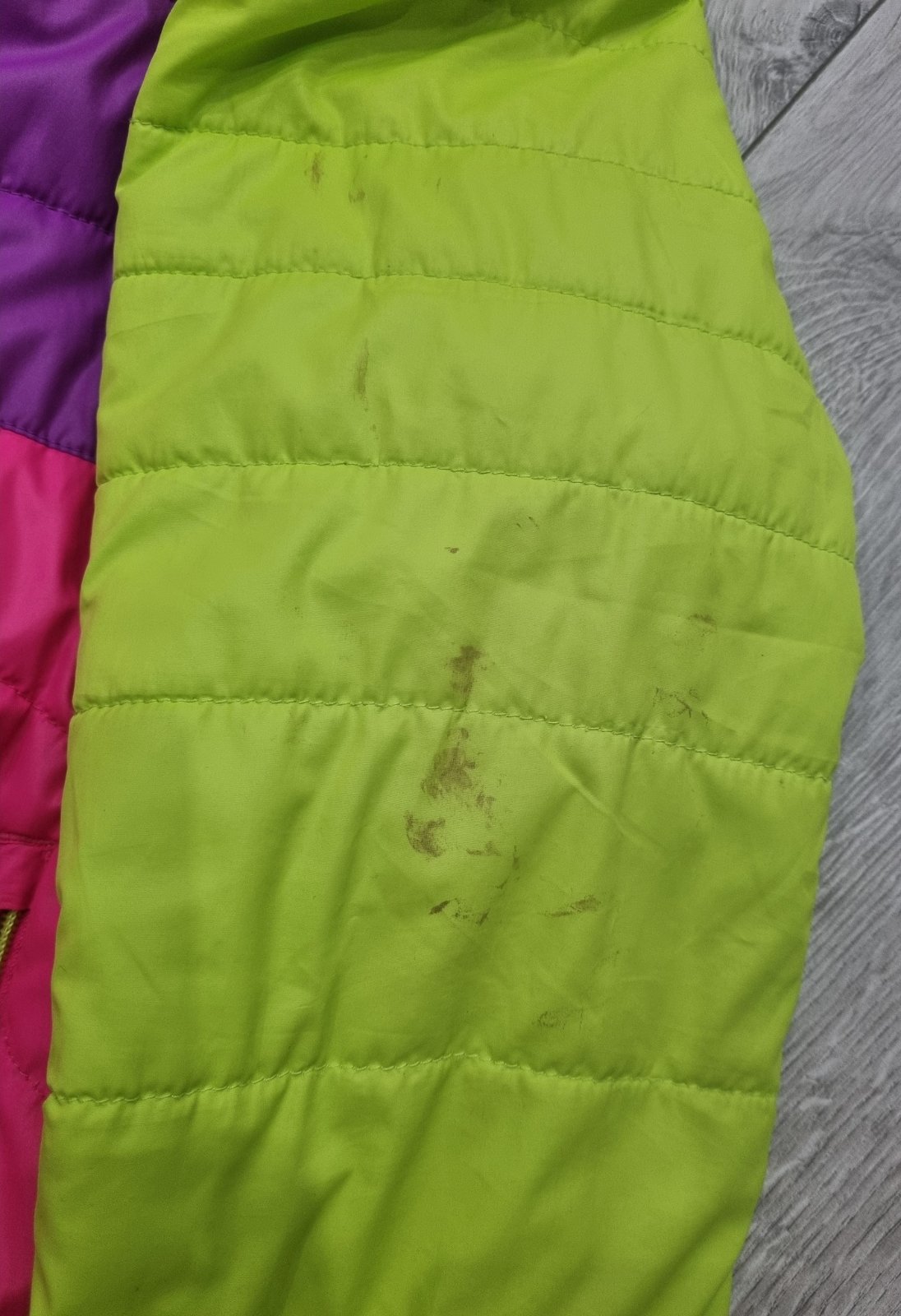 Predám prešívanú bundu vo veľk. č.152/158. Kapucňa je odnímateľná. Na ľavom rukáve má fľaky - viď posledné foto.
