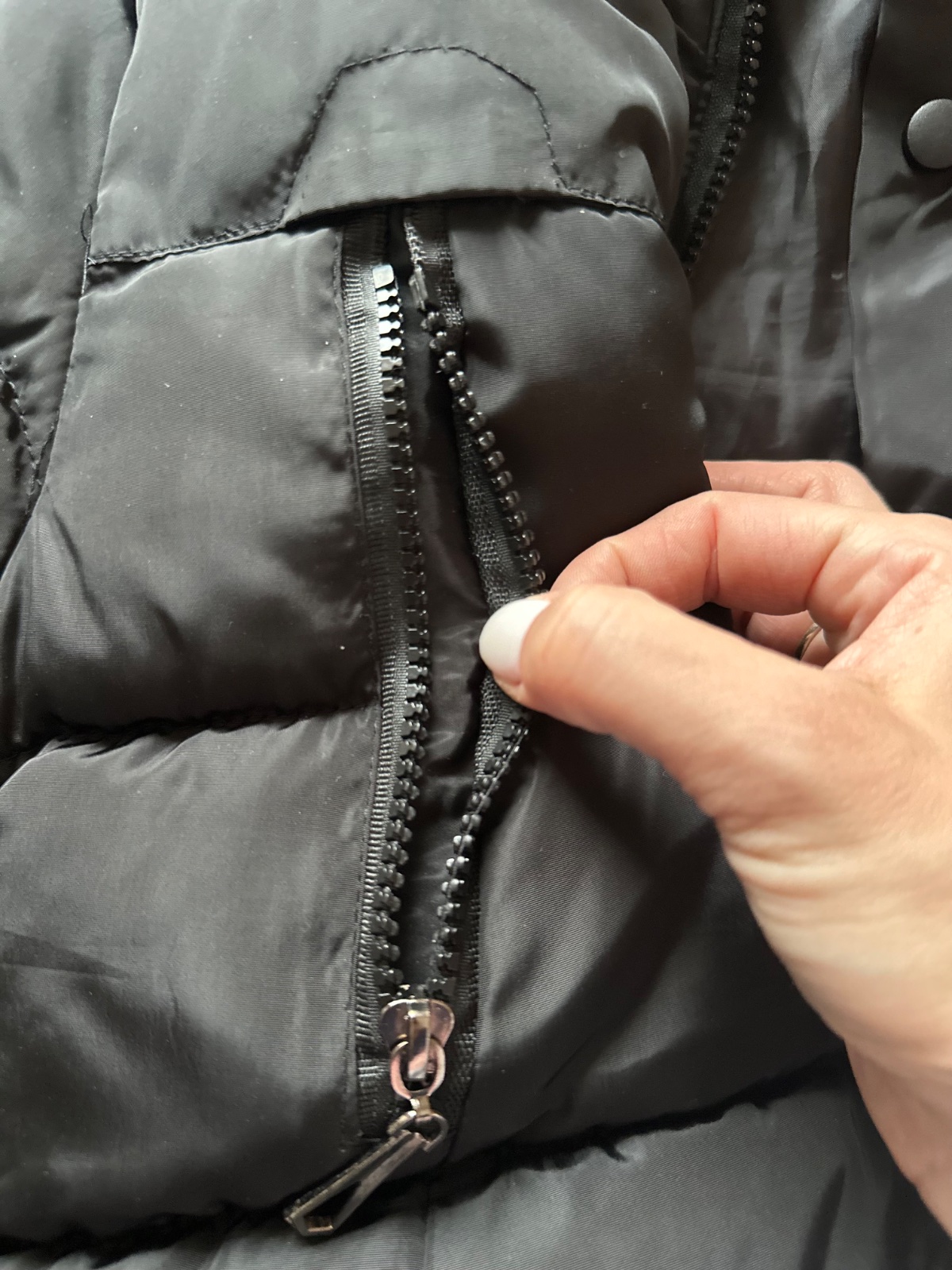 Minimálne nosená, kožušinka je na gombíčky - ked bundičku chcete oprat, treba kožušinku zložit, vrecká sú len “akože”.
