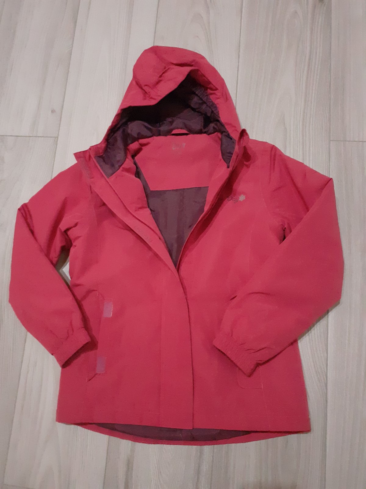Vetrovka je v super stave, krasnej kriklavej ruzovej farby kombinovanej s tmavo modrou Kapucna sa da odopnut, povrch vetrovky je vhodny do vetra a dazda, da sa nosit na jar/ jesen, prip.teplejsia z...