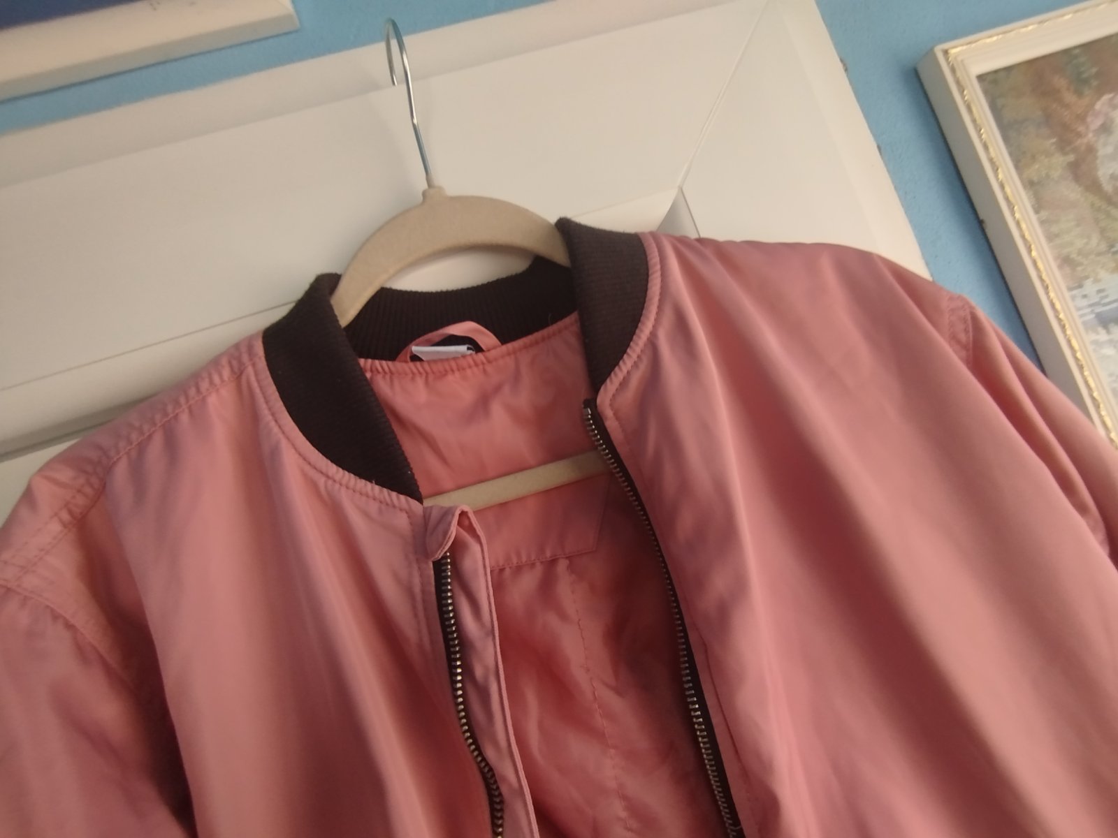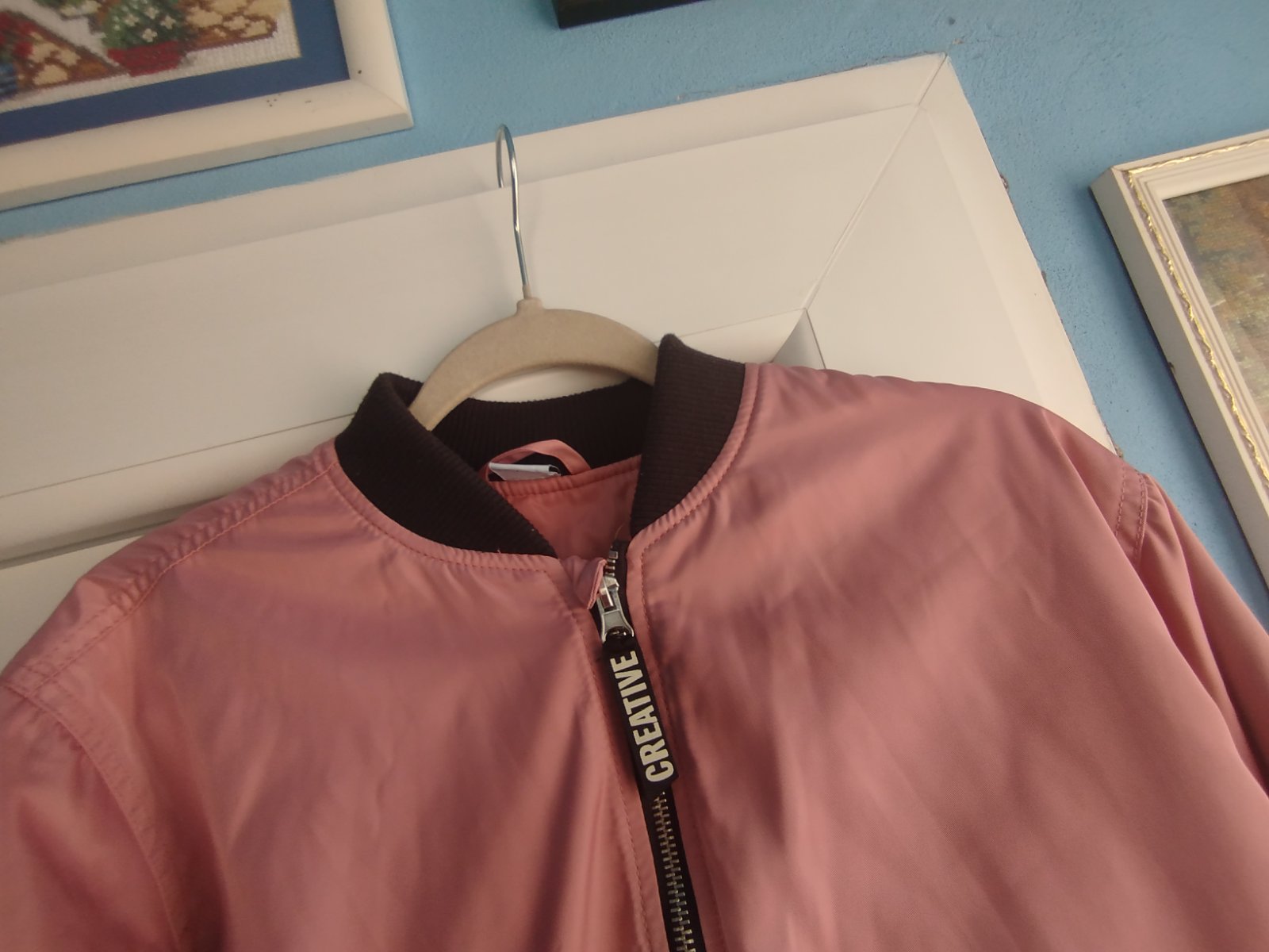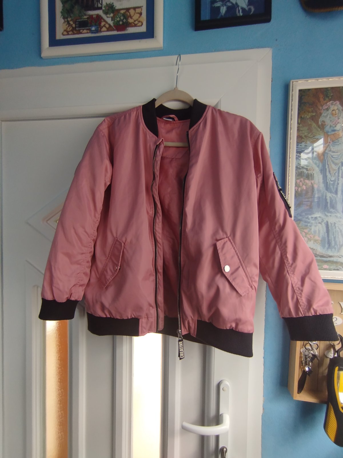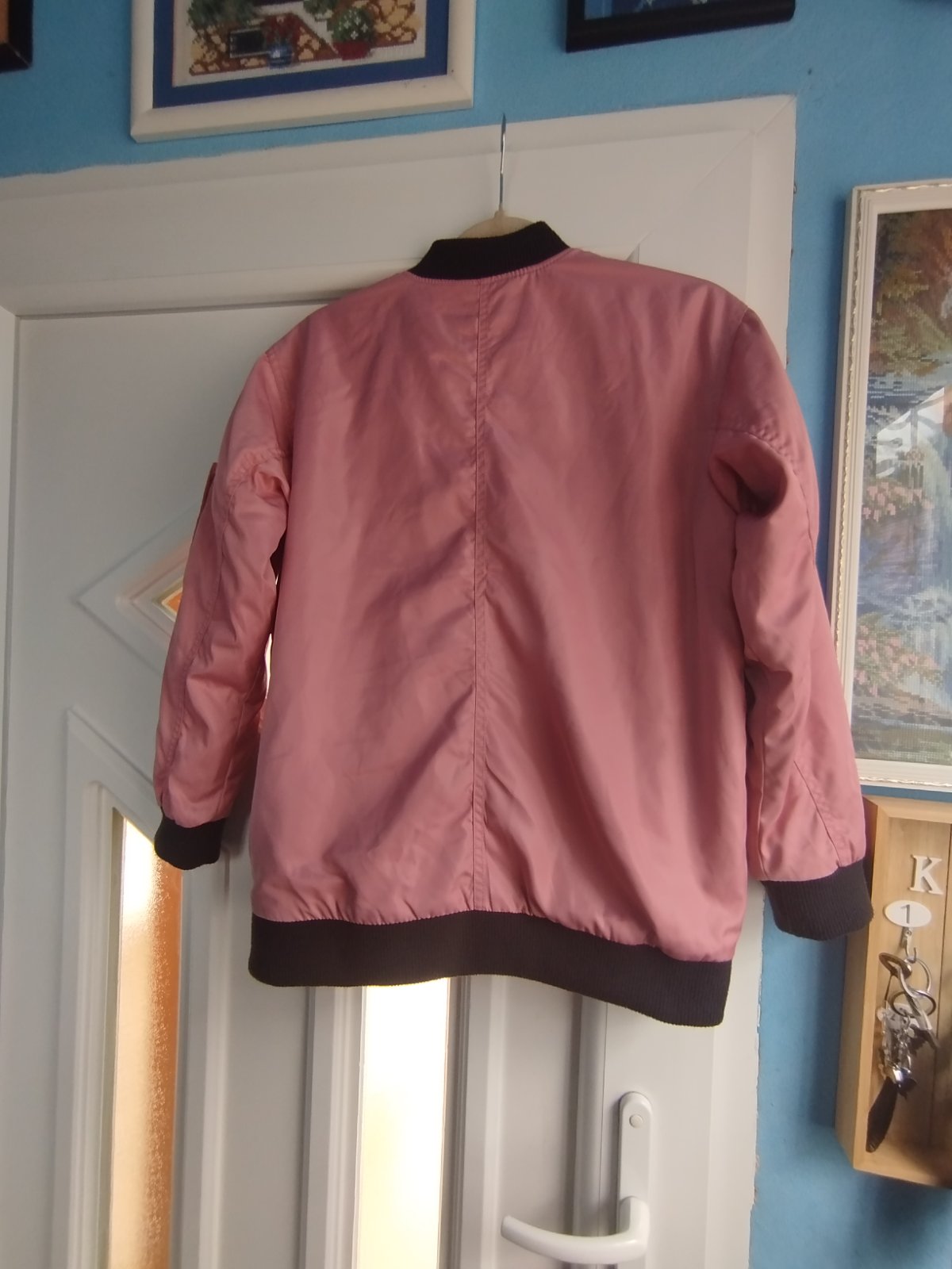 - pekna, málo nosena, velmi zachovala, teplá, vatovana, naozaj krasna farba, bez poskodenia, /pri foteni som nasla na jednom rukave slabú mini ciaru,druha fotka, zväčšite si fotku, v skutočnosti ťažko vidno/