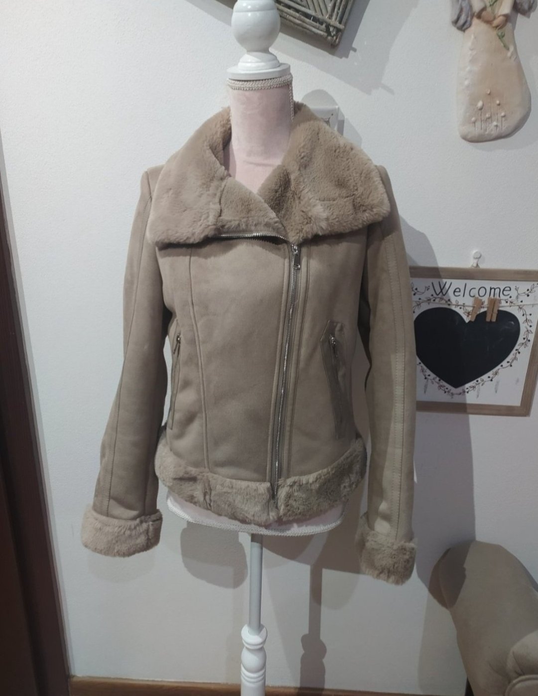 Krásny kozustek,zvrchu brúsená koža,zvnútra celý zateplený.obleceny