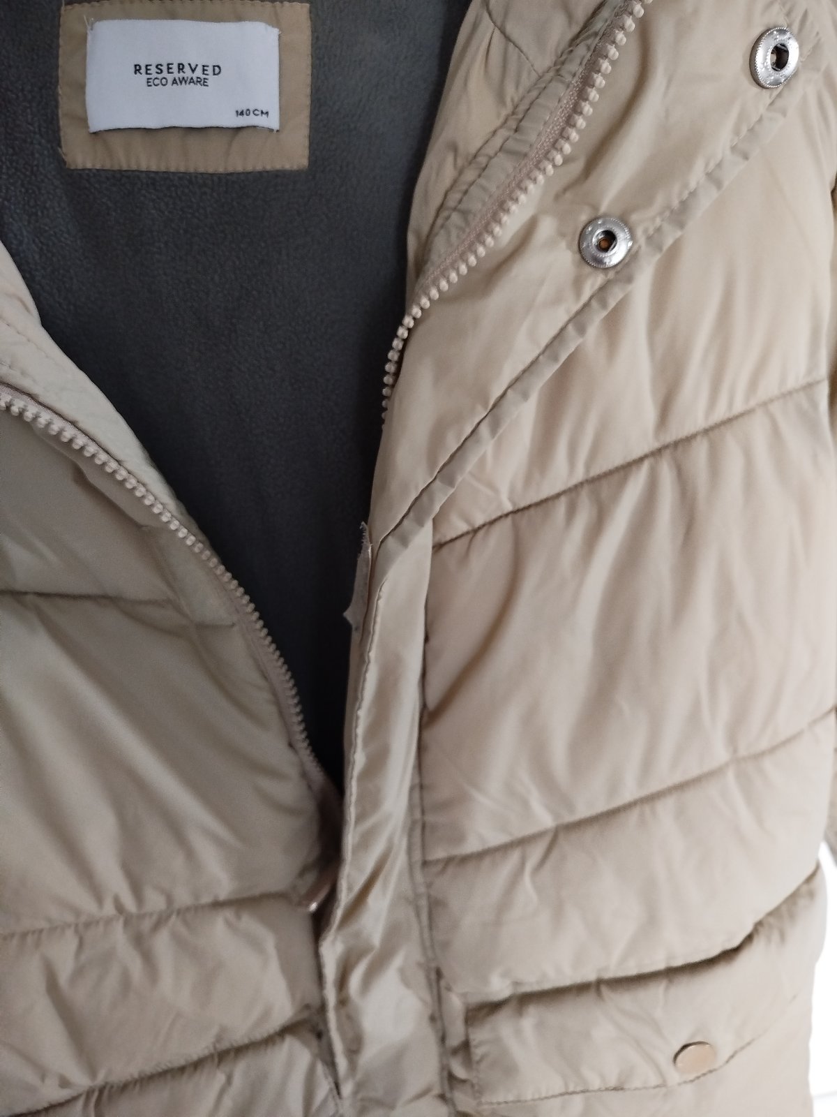 Zimná bunda v zachovalom stave, bez poškodení, s kapucňou, nedá sa odopnúť od bundy. Dĺžka bundy je 56 cm, zadná časť predĺžená na 60 cm, dĺžka rukávu je 50 cm + 1 cm patent. Reálna farba je na druhej fotke.