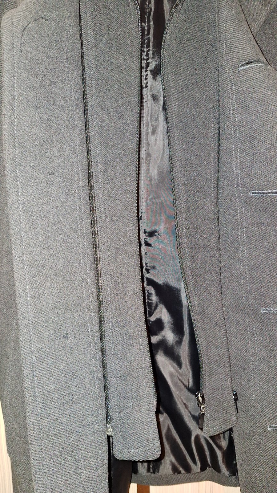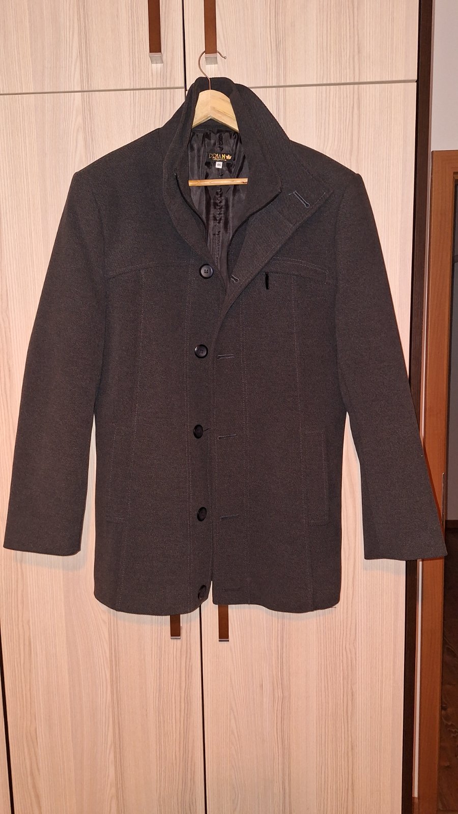Ponúkam na predaj nový pánsky tmavošedý kabát, veľmi pekne prepracovaný. Okrem zapínania na gombíky možnosť zapnúť aj na zips. Podšitý saténovou látkou.