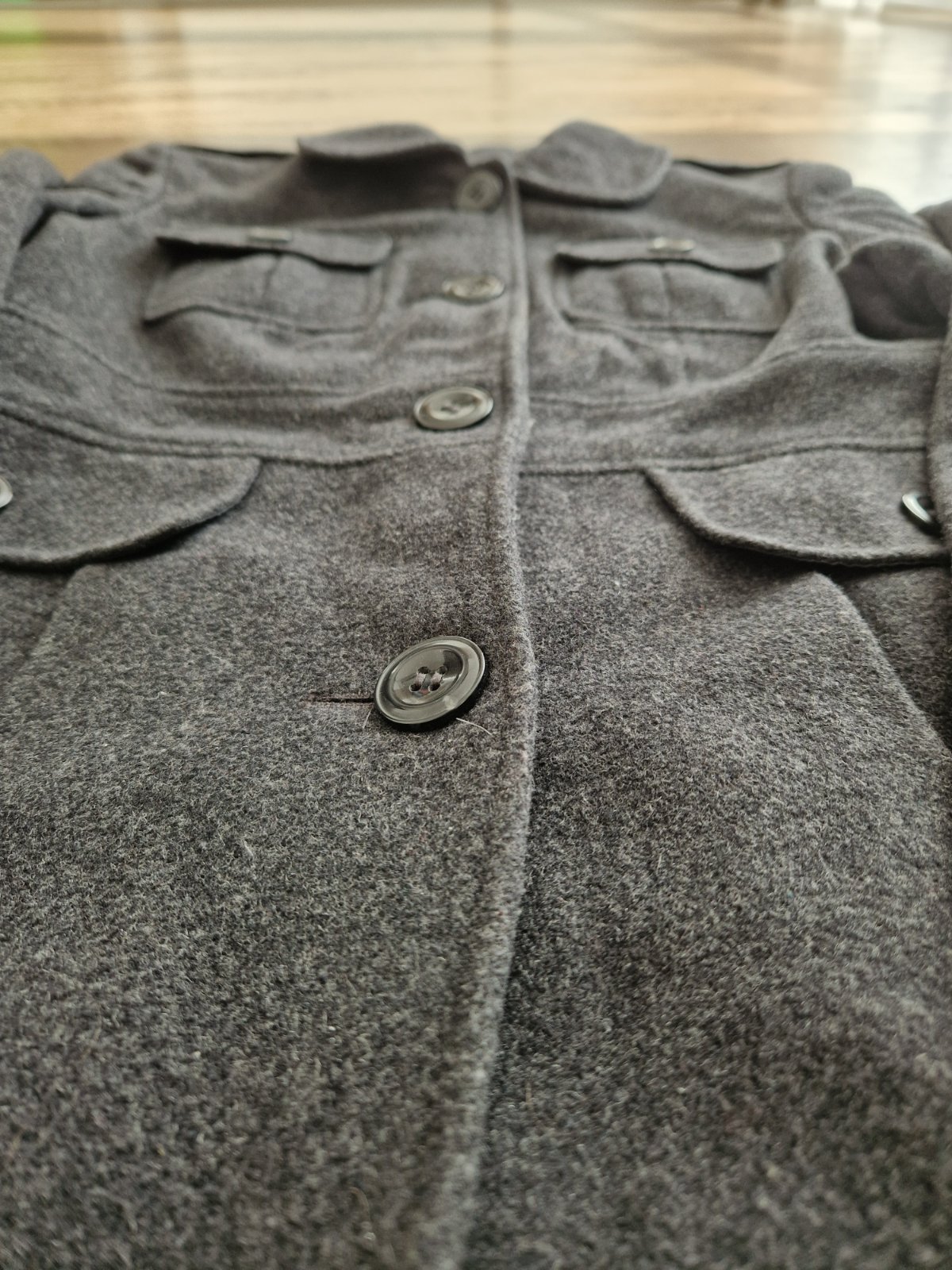 Krásny kabátik, oblečený bol len raz, dcérke je malý, super stav, bez poškodenia, farba tmavošedá až skoro čierna