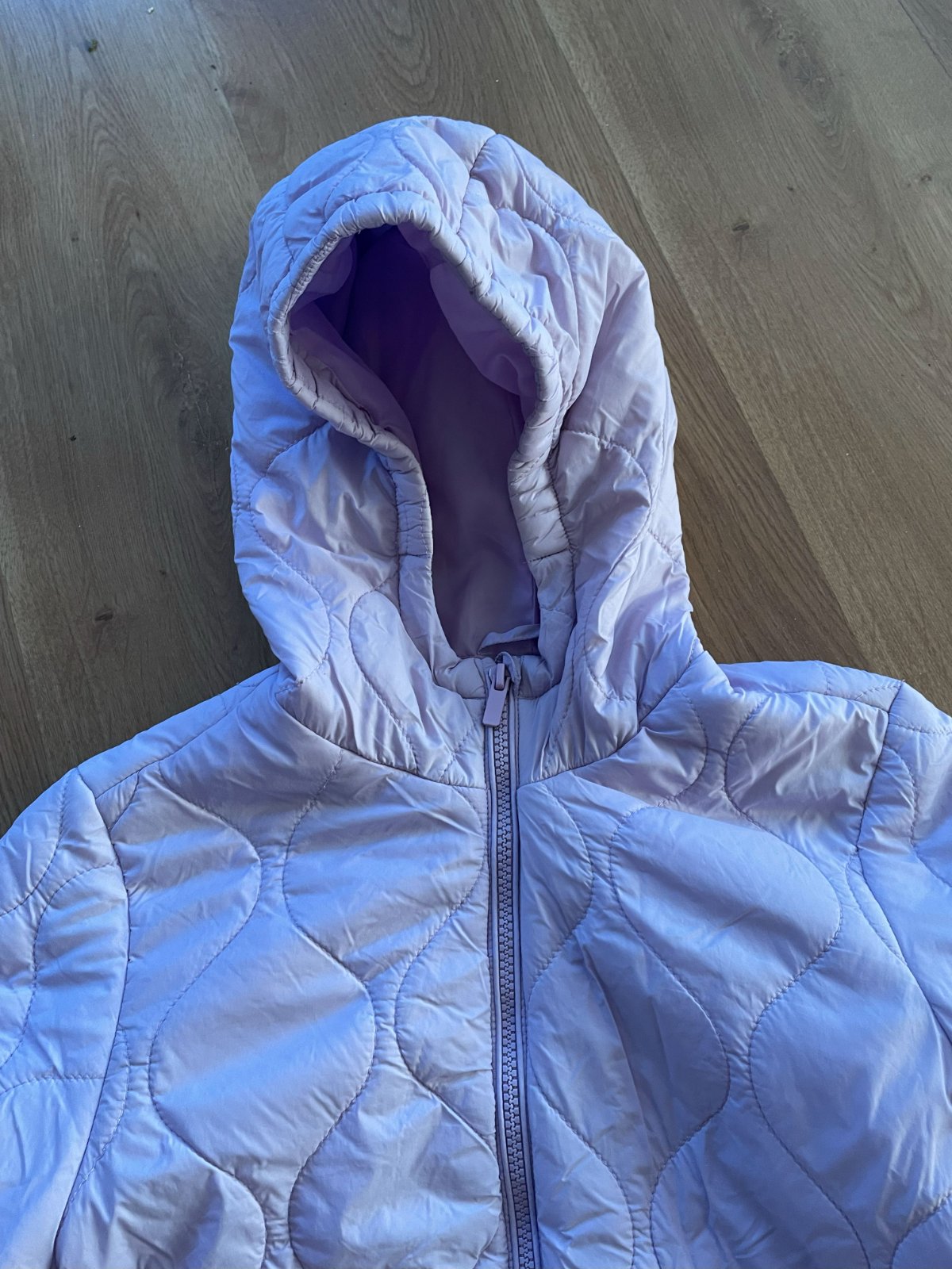 Predam v peknom neposkodenom nosenom stave bledofialovu prechodnu vetrovku, lahka, dobre sa nosi, kapucna napevno, dlzka cca. 63cm, sirka pod pazuchami cca. 50cm, rukav od pleca cca 62cm