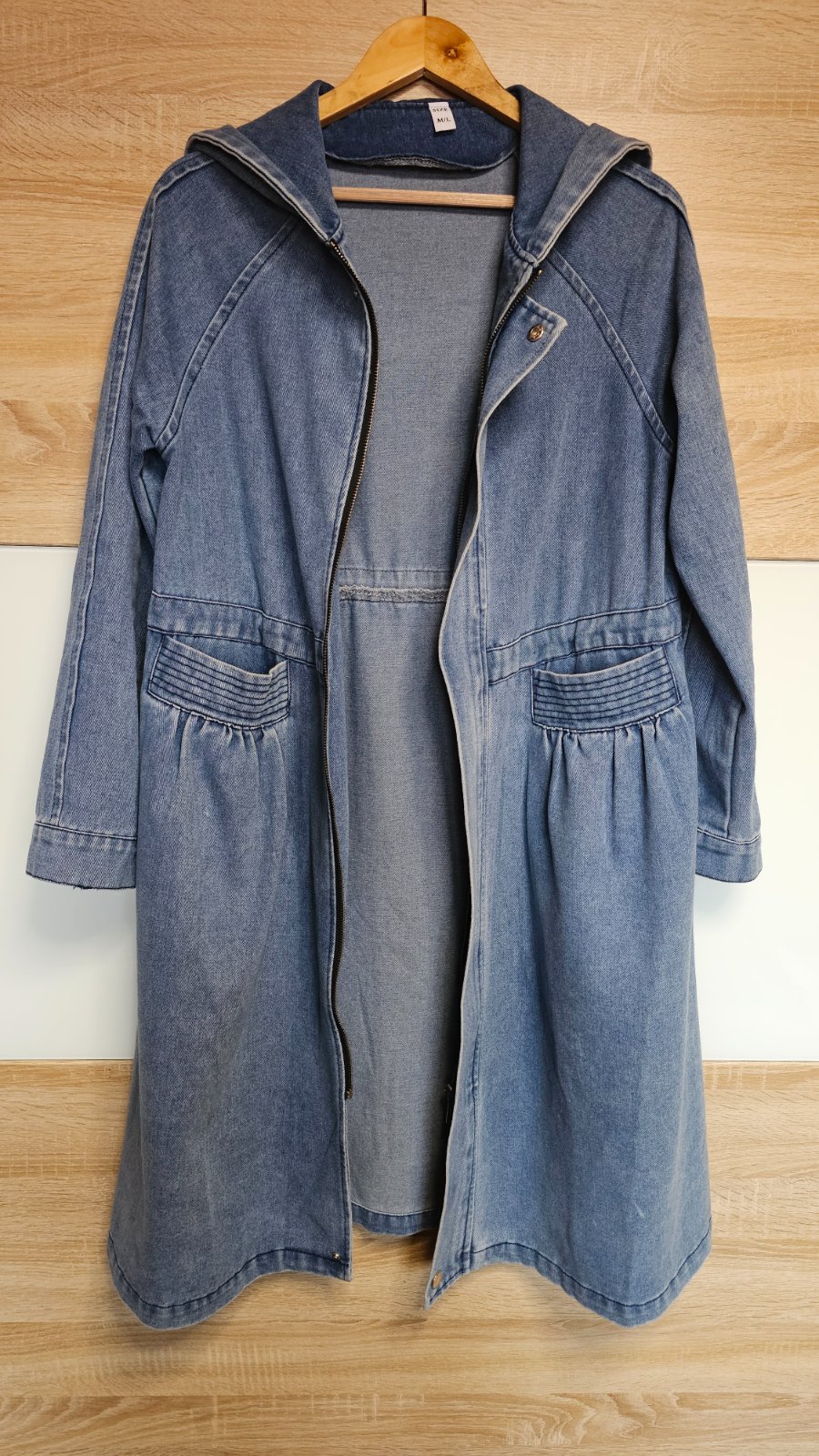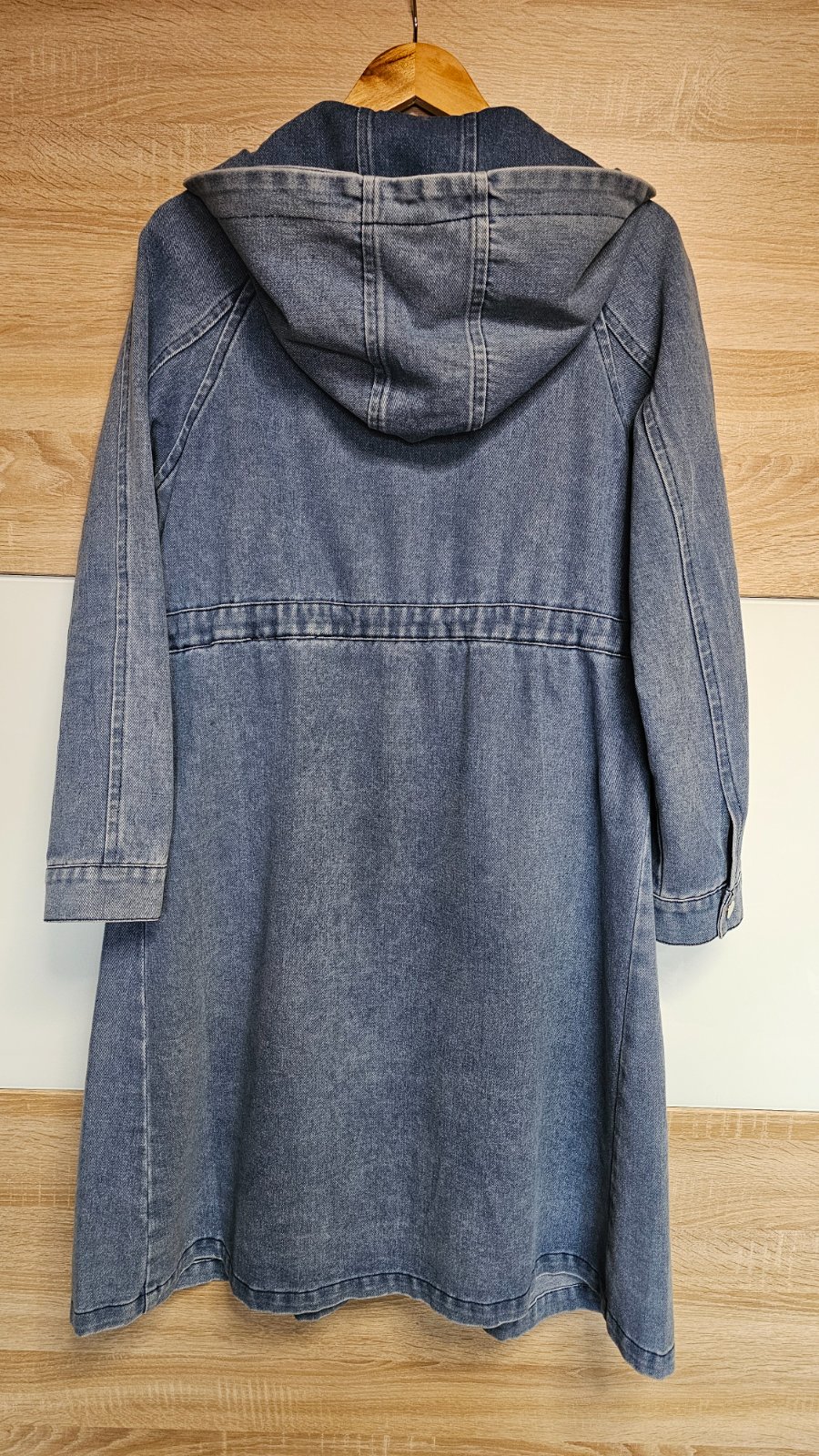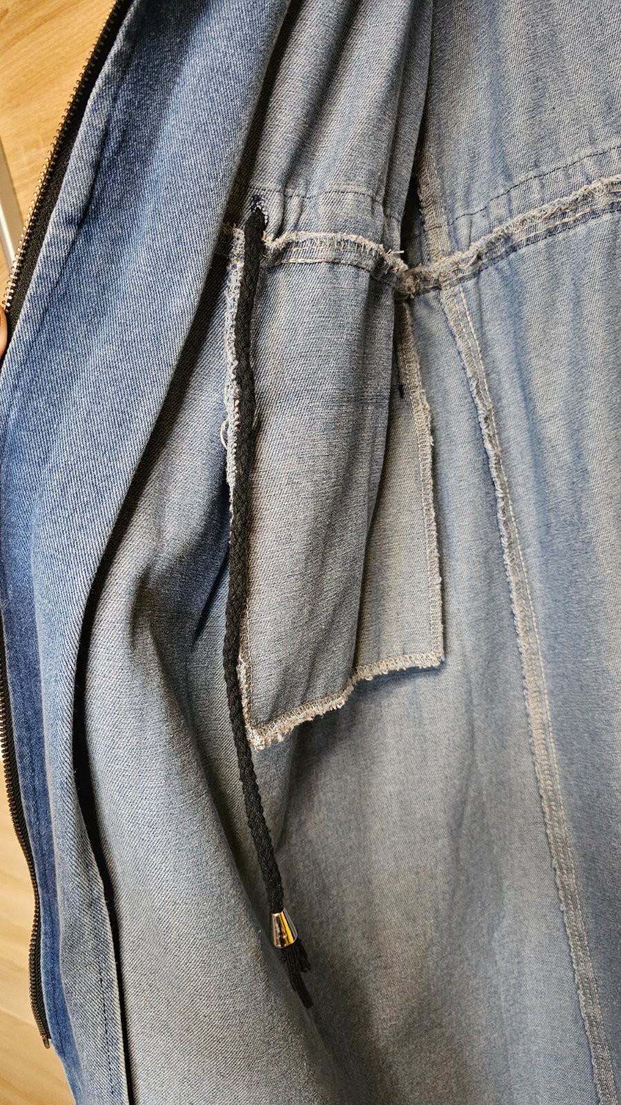 Nádherná riflová bunda s kapuckou😍 vnútri sú sťahovačky,aby sa dal krásne vytvarovať pás 😎