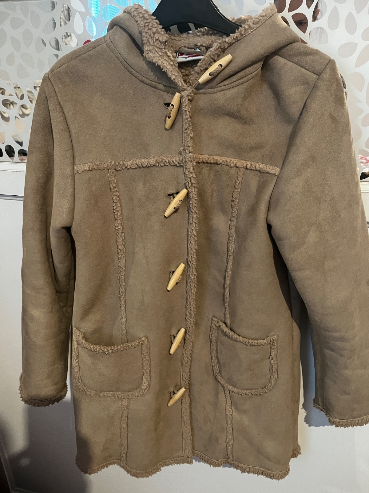 Krasny doevčensky kožúštek svetlohnedej farby. Ma drobnu chybičku, malu dierku pri vrecku. Inak vynikajuci stav.