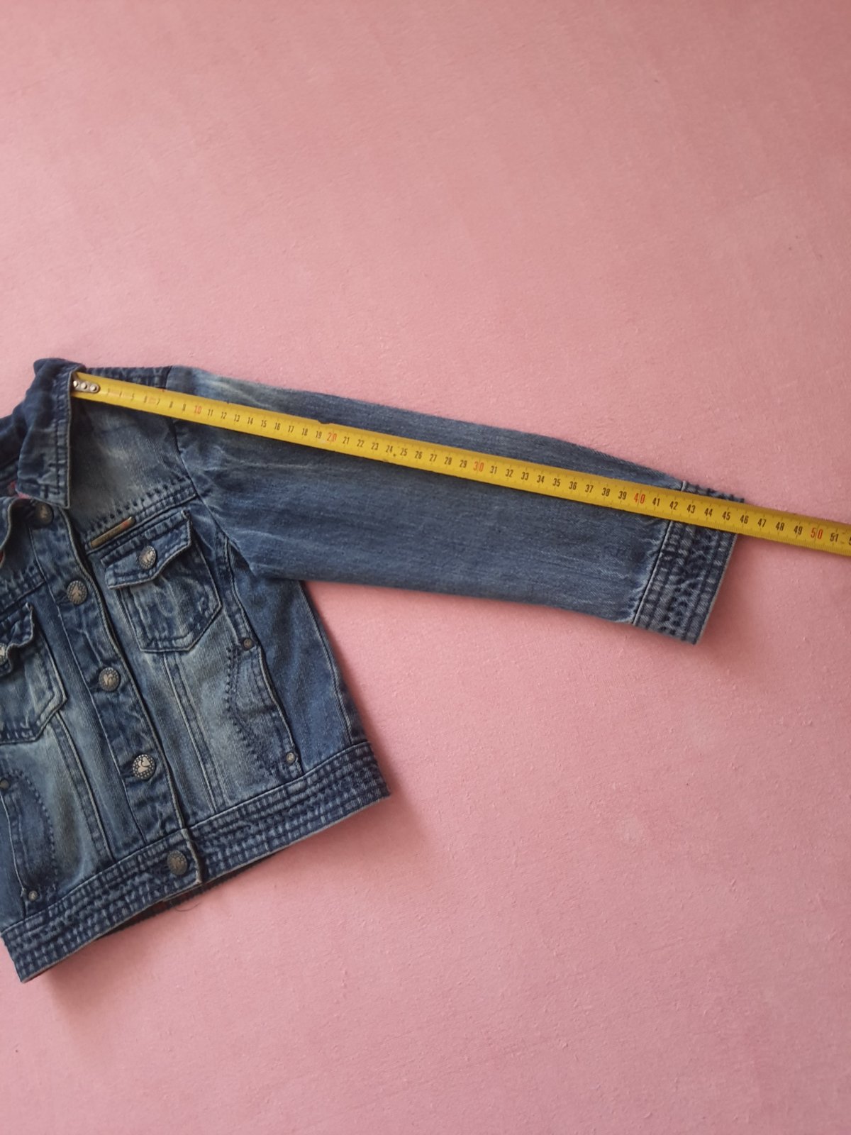 Malo nosena bunda, bez poškodení, na ľavom pleci jemna skvrna, sfotena na poslednej foto, dĺžka 37cm,dlzka rukava 38cm,šírka cez prsua 2x32,cena +poštovné