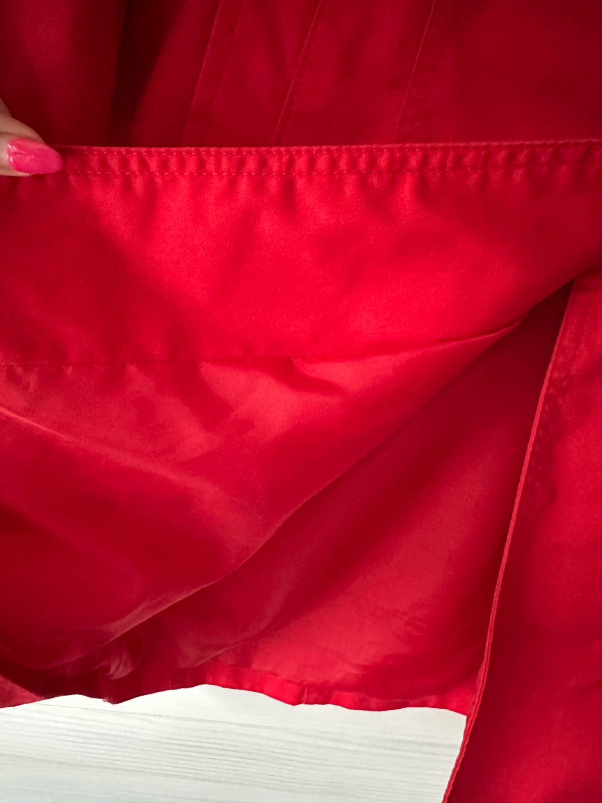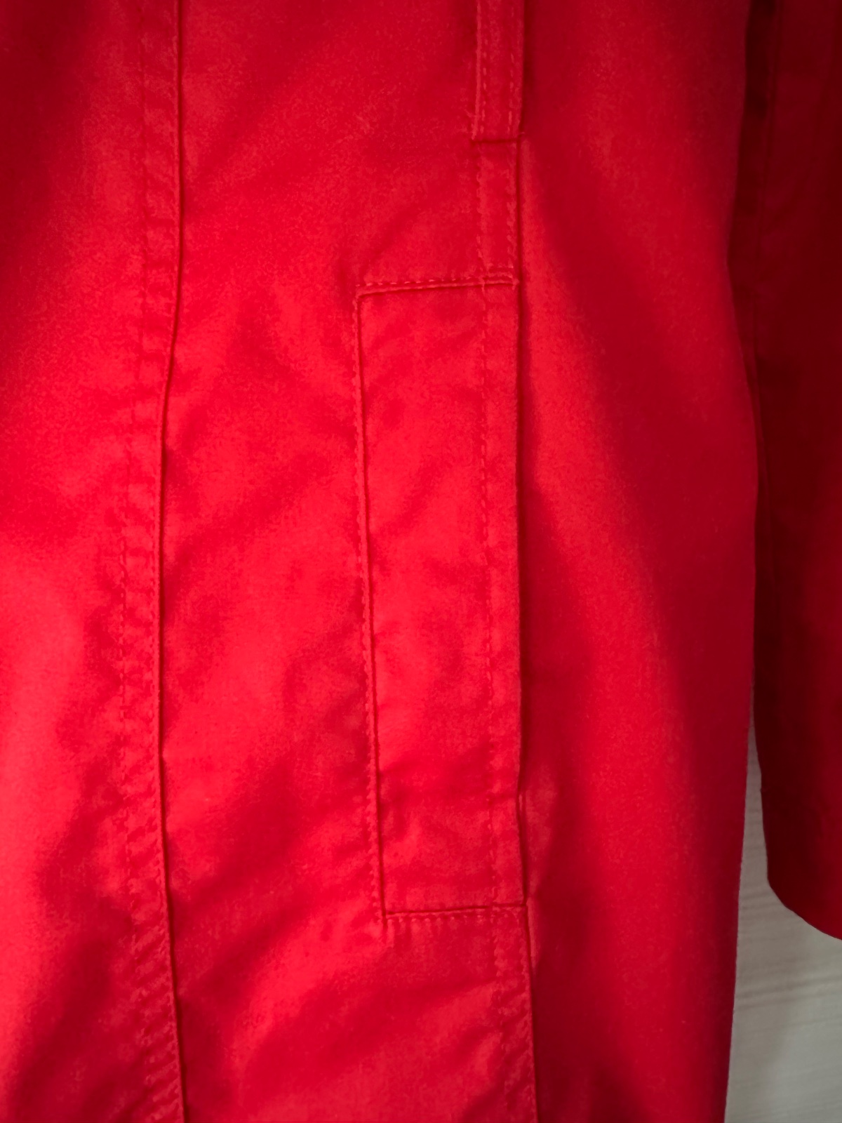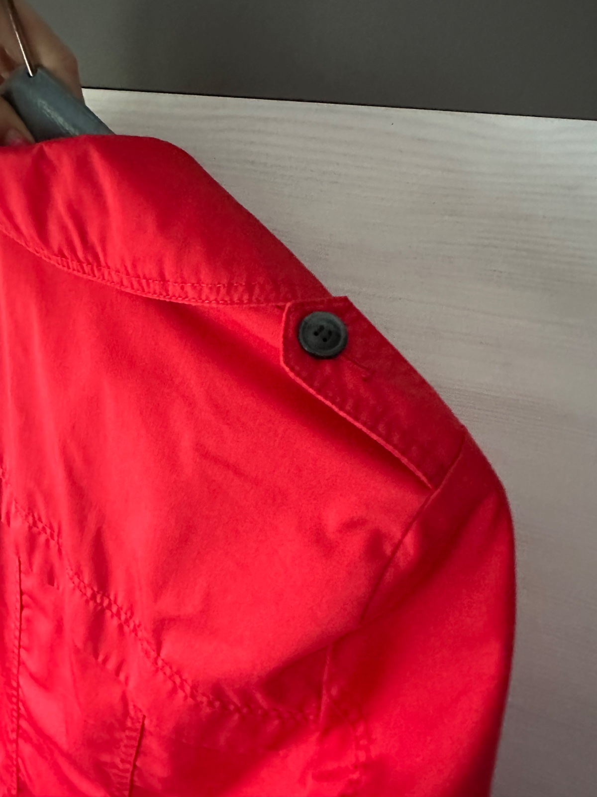 Ponúkam na predaj červený trenčkot, je výrazný, veľ. 42.