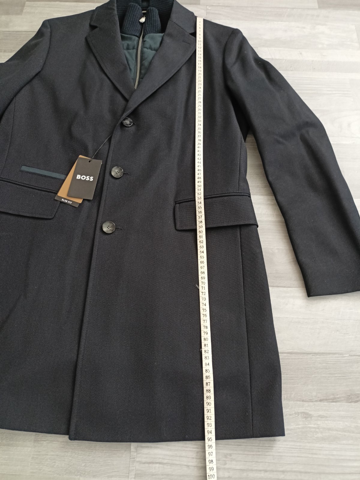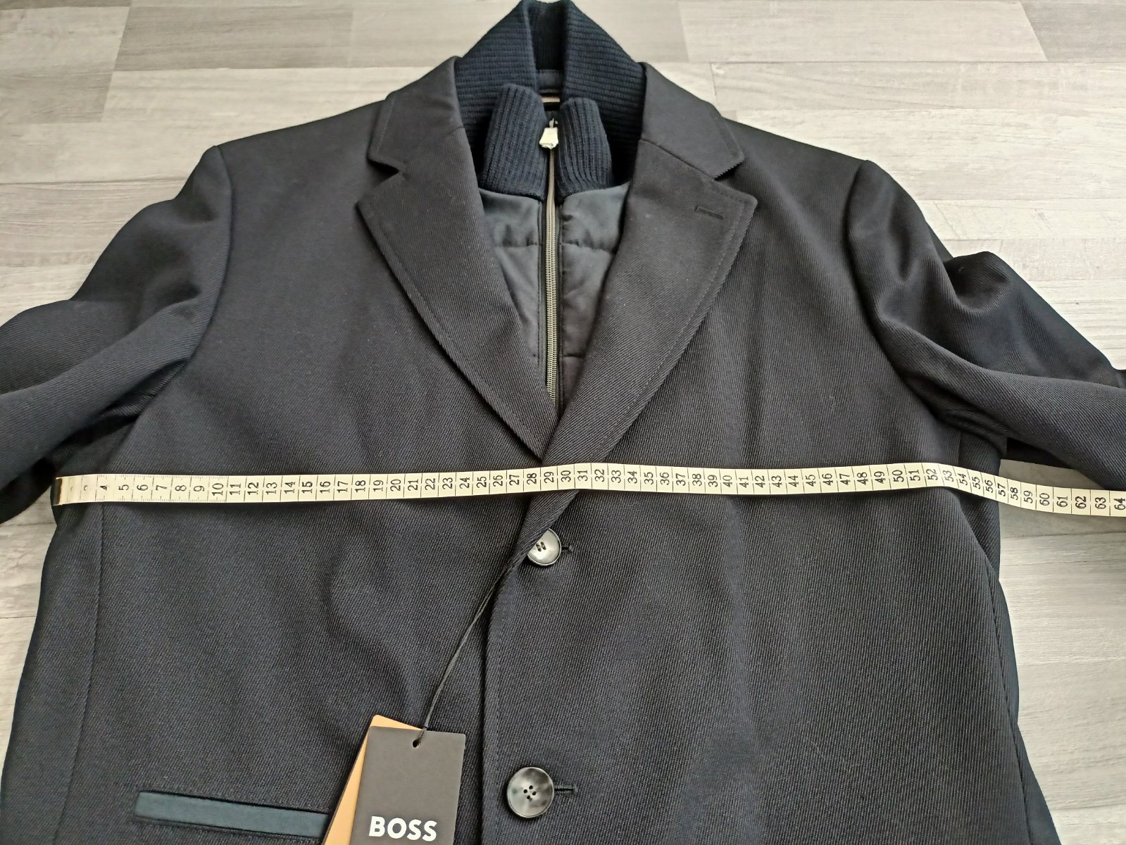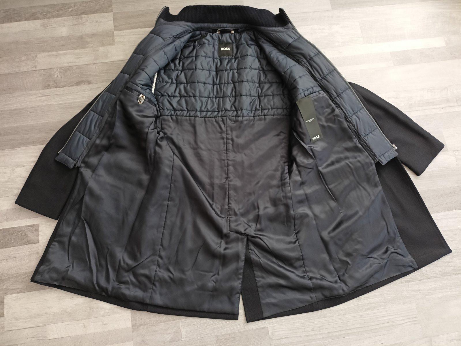 Kabát je nový,s visačkou. Je tmavomodrý, veľkosť 52, pekne prepracovaný.