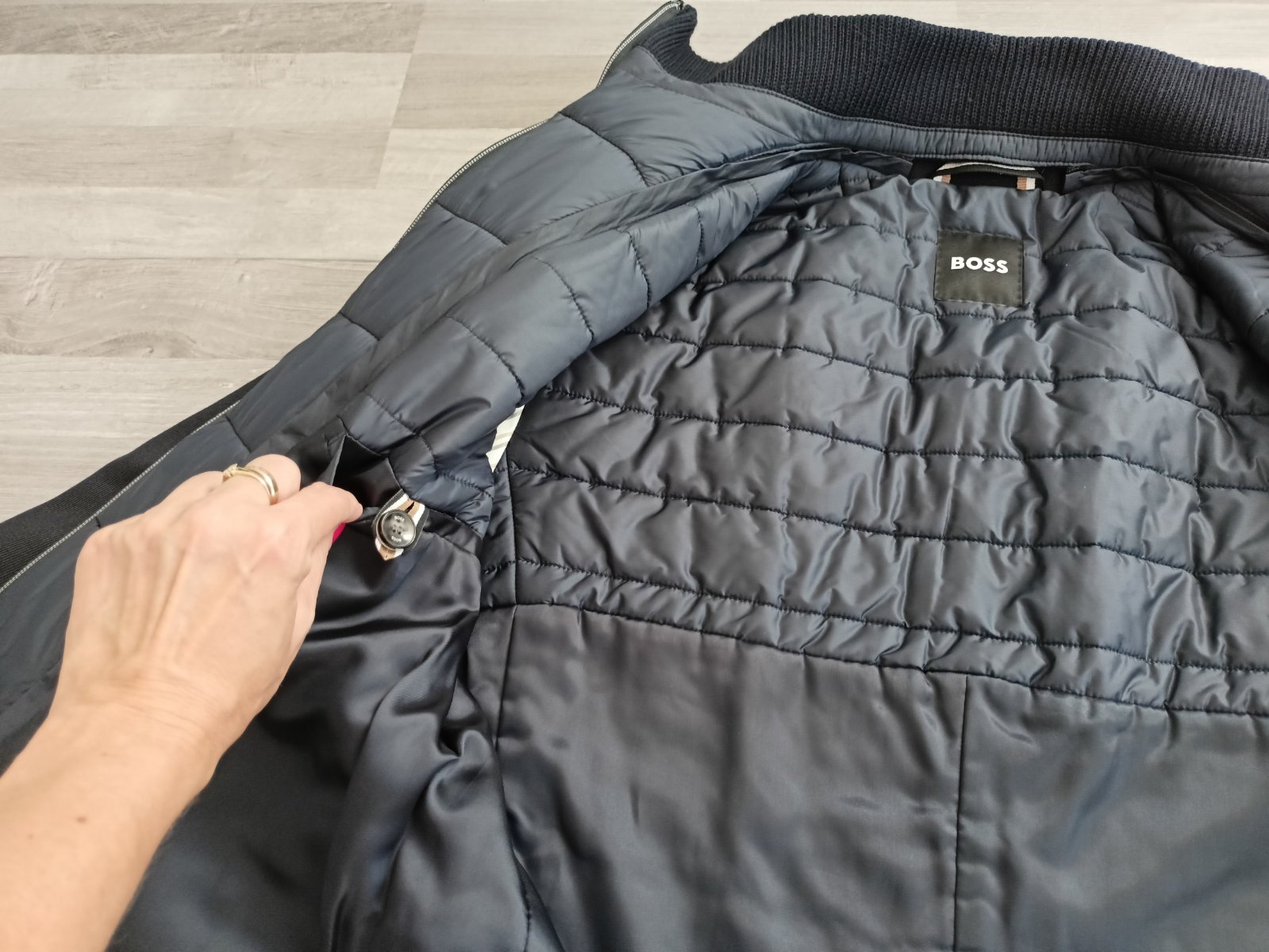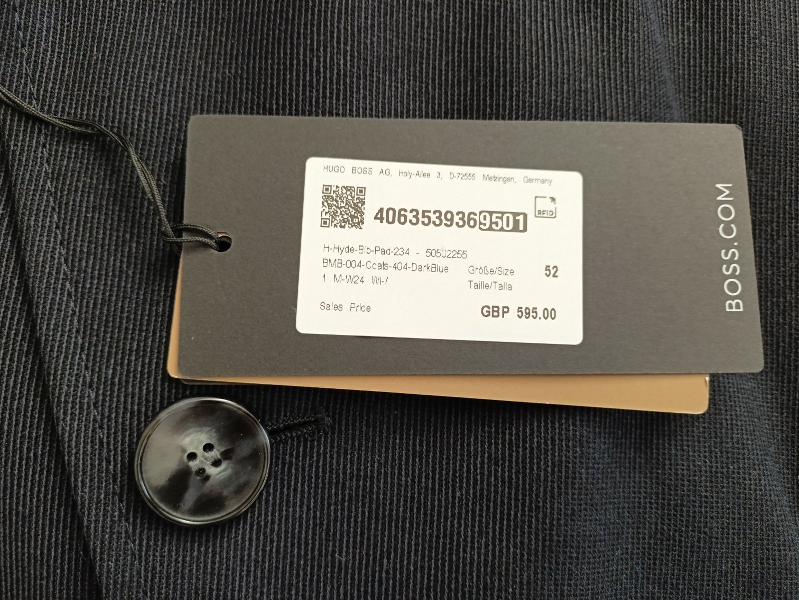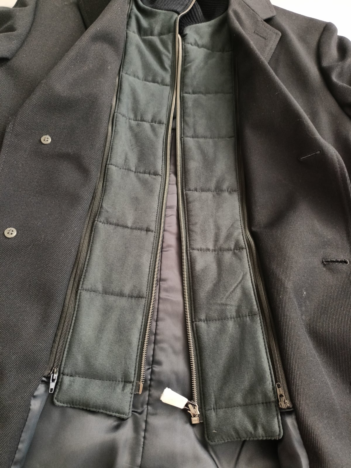 Kabát je nový,s visačkou. Je tmavomodrý, veľkosť 52, pekne prepracovaný.