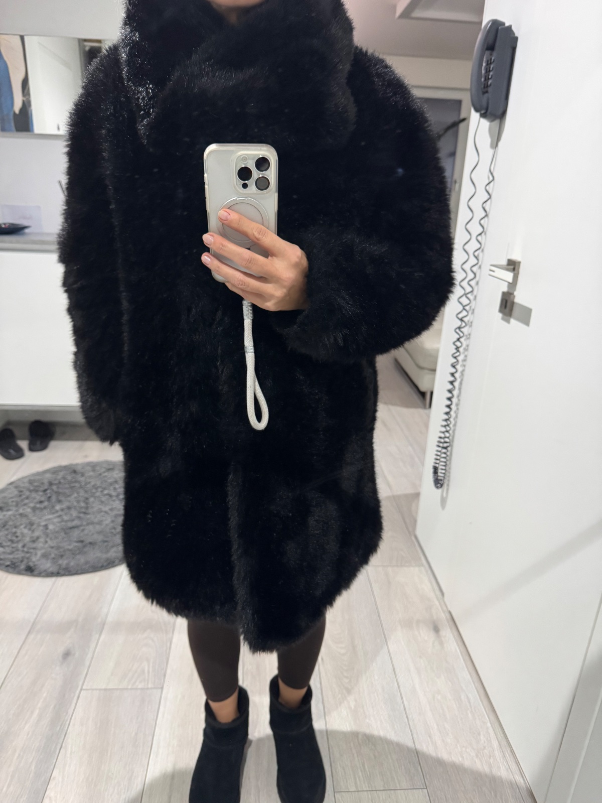 Krasny kozuch v top stave. Ja ho mam ako oversize(nosim velkost XS), cize sadne XS, S, M.