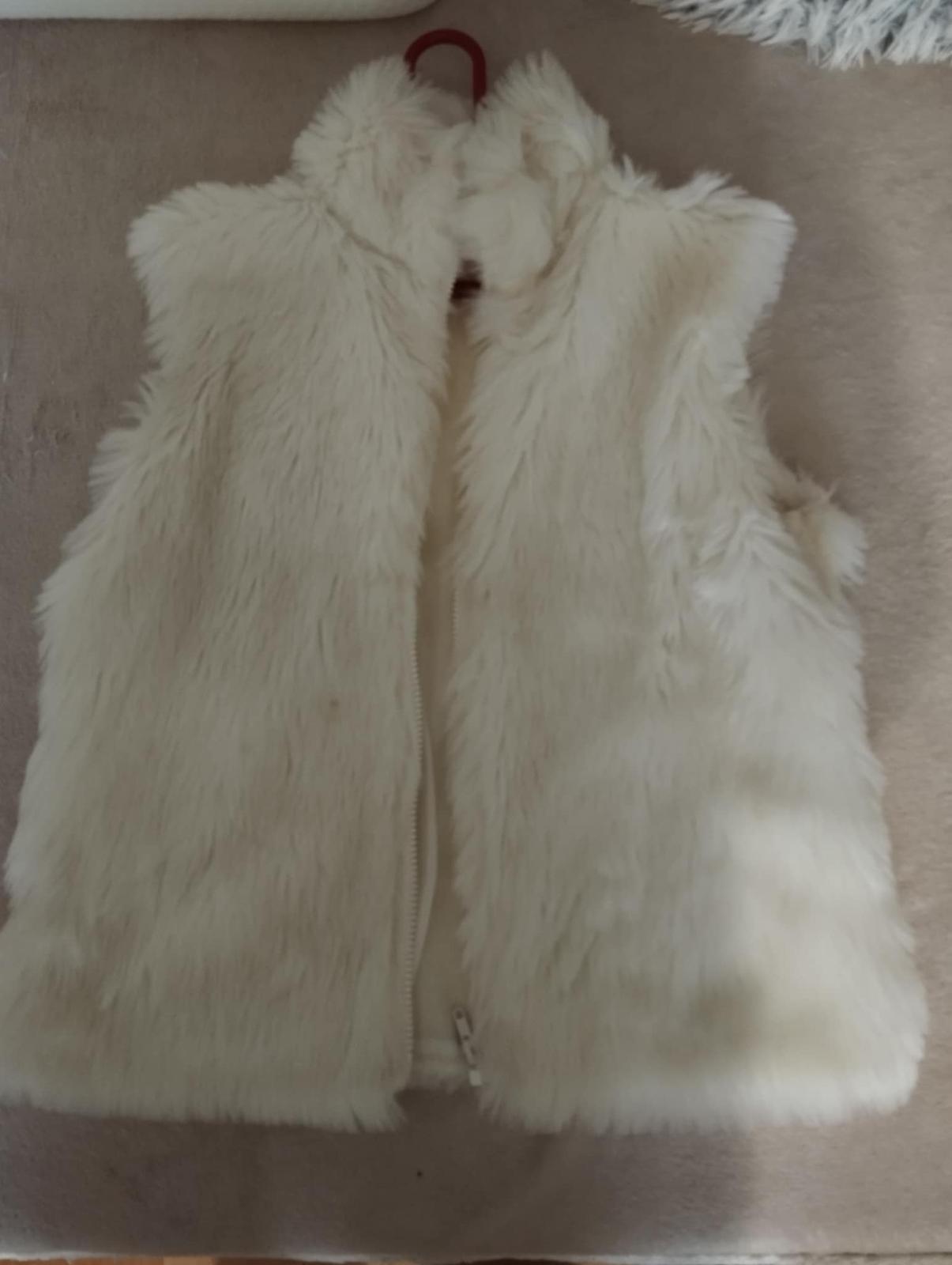 kožušinková vesta, umelá kožušinka, oblečená asi 3x, dlžka 56, prsia 49x2, veľ.píše S/M, sedí na 38
