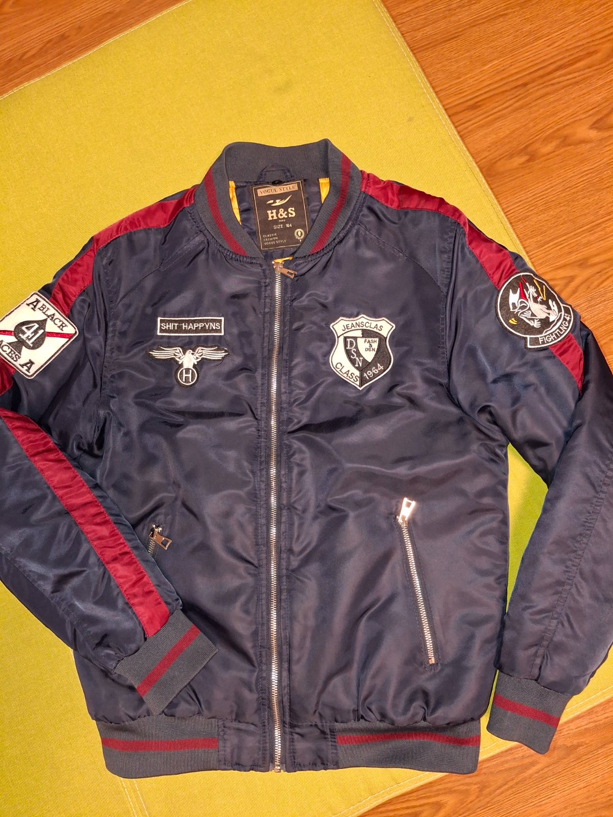 Vetrovka je vo veľmi dobrom stave máličko nosená má dve vrecká.Z vnútra je tričkový materiál a preto je na pocit teplejšia nie ako tie šušťákové.
