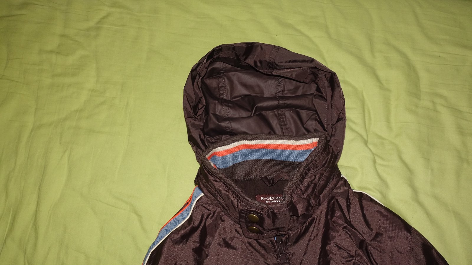 Pekna tenka sustakova bundicka vo velmi dobrom stave. Ma kapucnu, ktora je schovana v golieri.