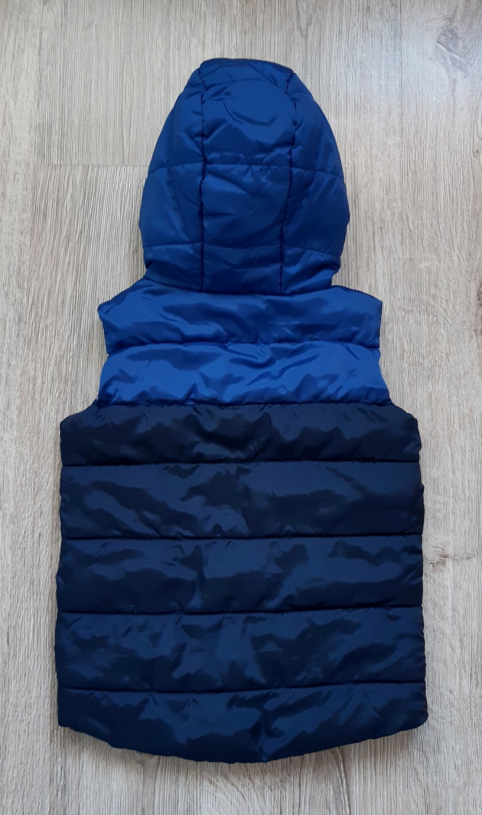 Prešívaná chlapčenská vesta vo veľmi dobrom nosenom stave (bez dierok, fliačikov a žmolkov; sem-tam trčiaca nitka; farba na bežci na zipse je zošúchaná - detail viď foto č.4).